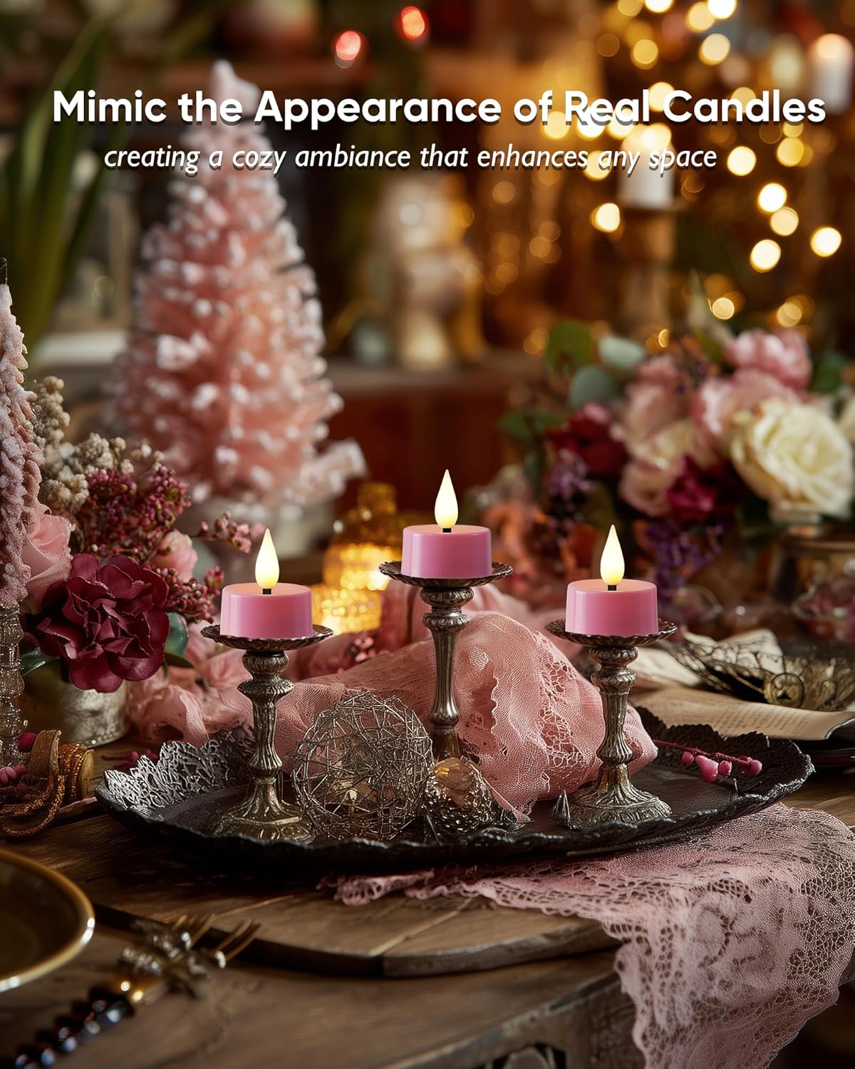 - Romantic Decor: Create a warm, charming ambiance with our real wax pink fake Candles, which are perfect for Light updates, Valentine's Day, dinners, special nights, home decor, Halloween, Christmas
