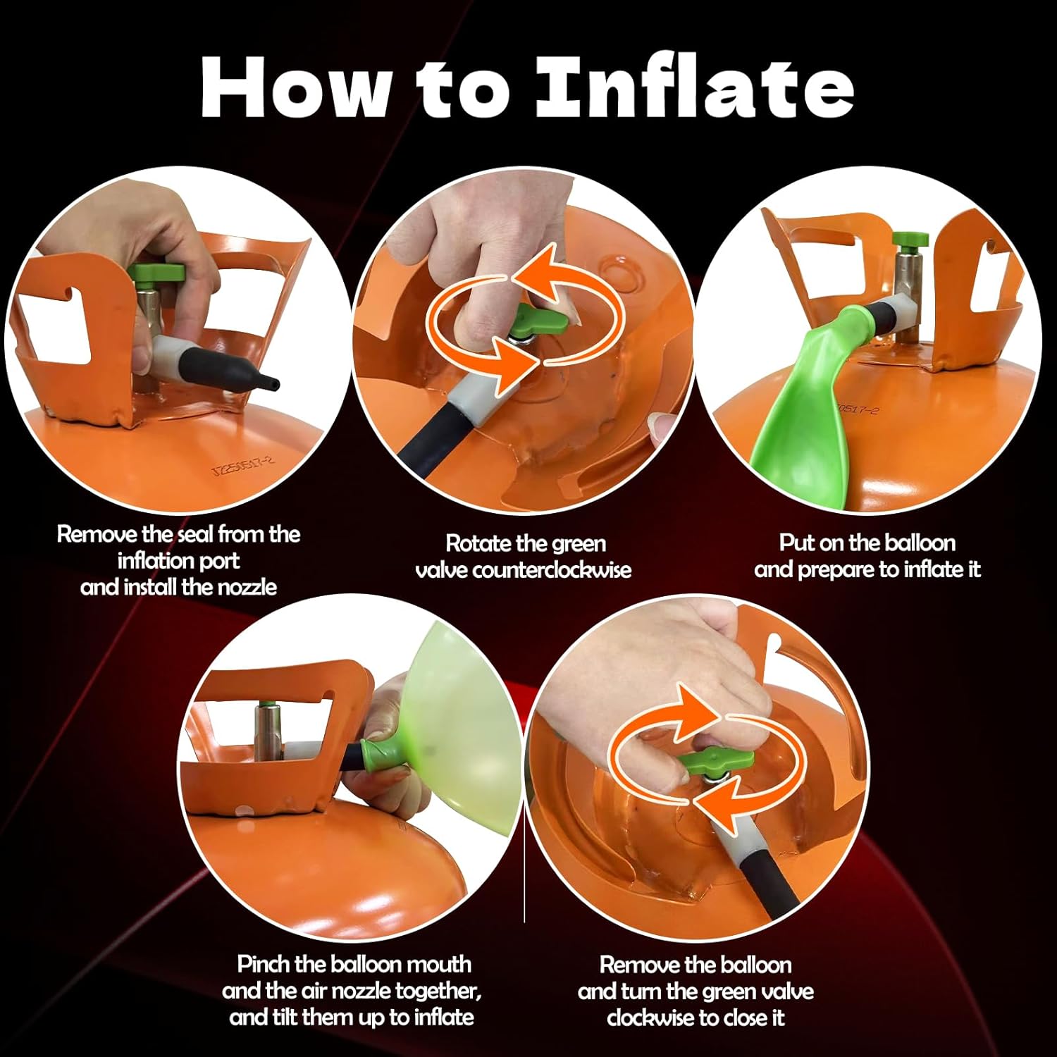 - Helium Tank:1 Tank,99.99% Pure Helium (Non-flammable, Non-toxic - Safe for Indoor Use),12.96cu.ft of helium per tank can fill 50 Standard 9-inch Latex Balloons** (Balloons provided are 12-inch size - inflate to 9" for best results).