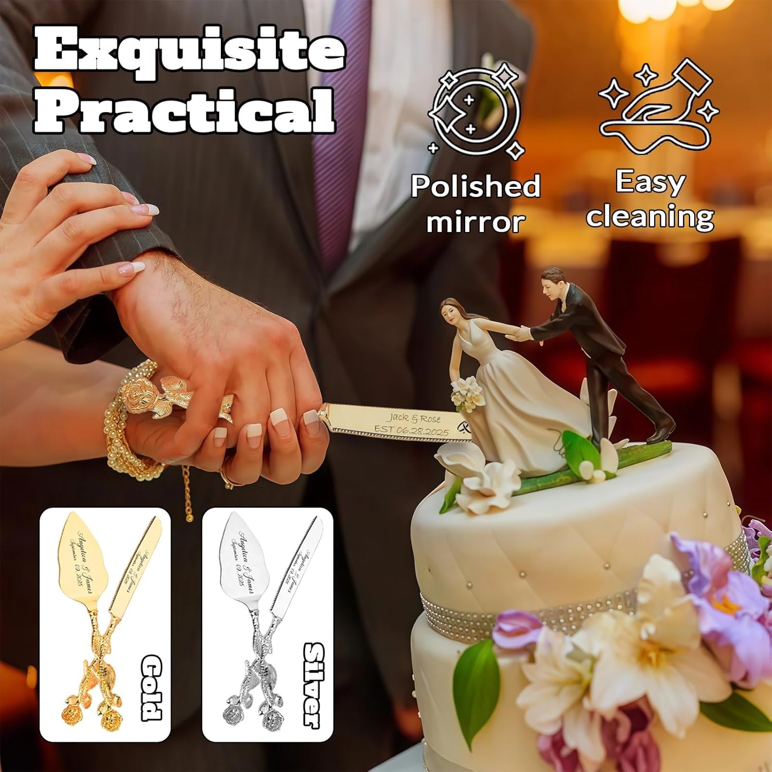 - Personalized Wedding Cake Cutting Set - Engrave names, dates, or custom designs for a unique keepsake; laser engraved to never fade, commemorating your marriage with an intimate touch for your special wedding day