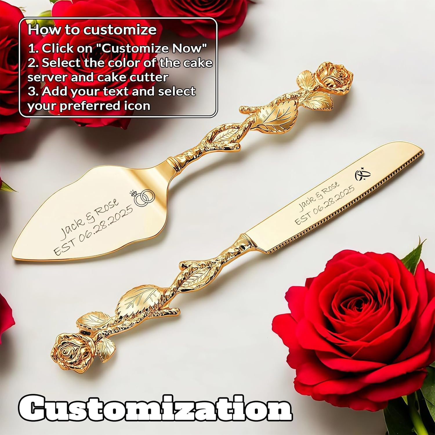- Premium Gold Cake Cutting Set Quality - Crafted with superior materials featuring a sharp blade, gold-rose handle, and sturdy construction; resistant to bending, easy to clean, and built to last for lifelong use