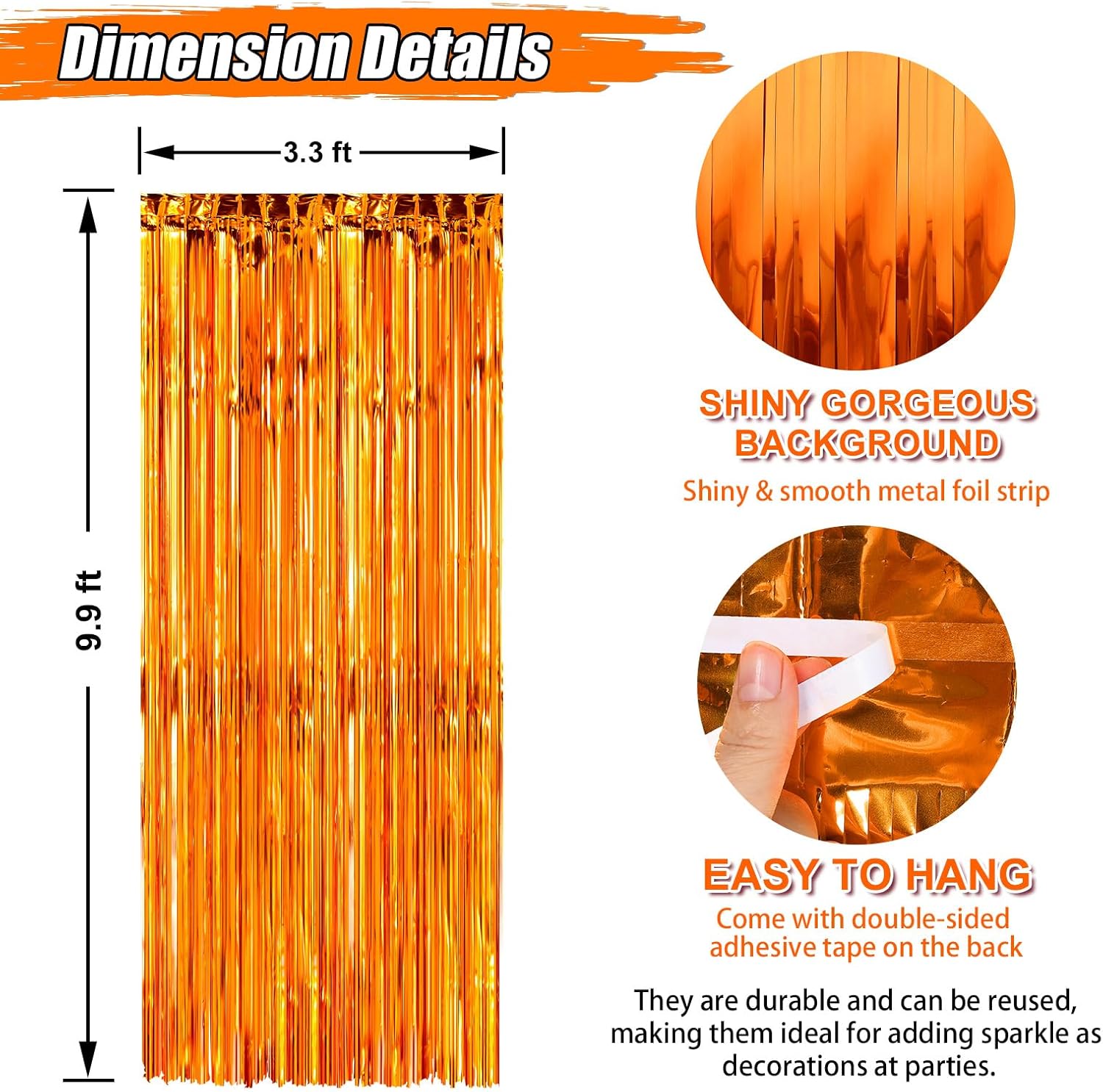 Crosize 3 Pack 3.3 x 9.9 ft Orange Foil Fringe Glitter Curtains Party Decorations, Tinsel Backdrop for Parties, Door Streamers for Birthday, Photo Booth Backdrops, Party Decor