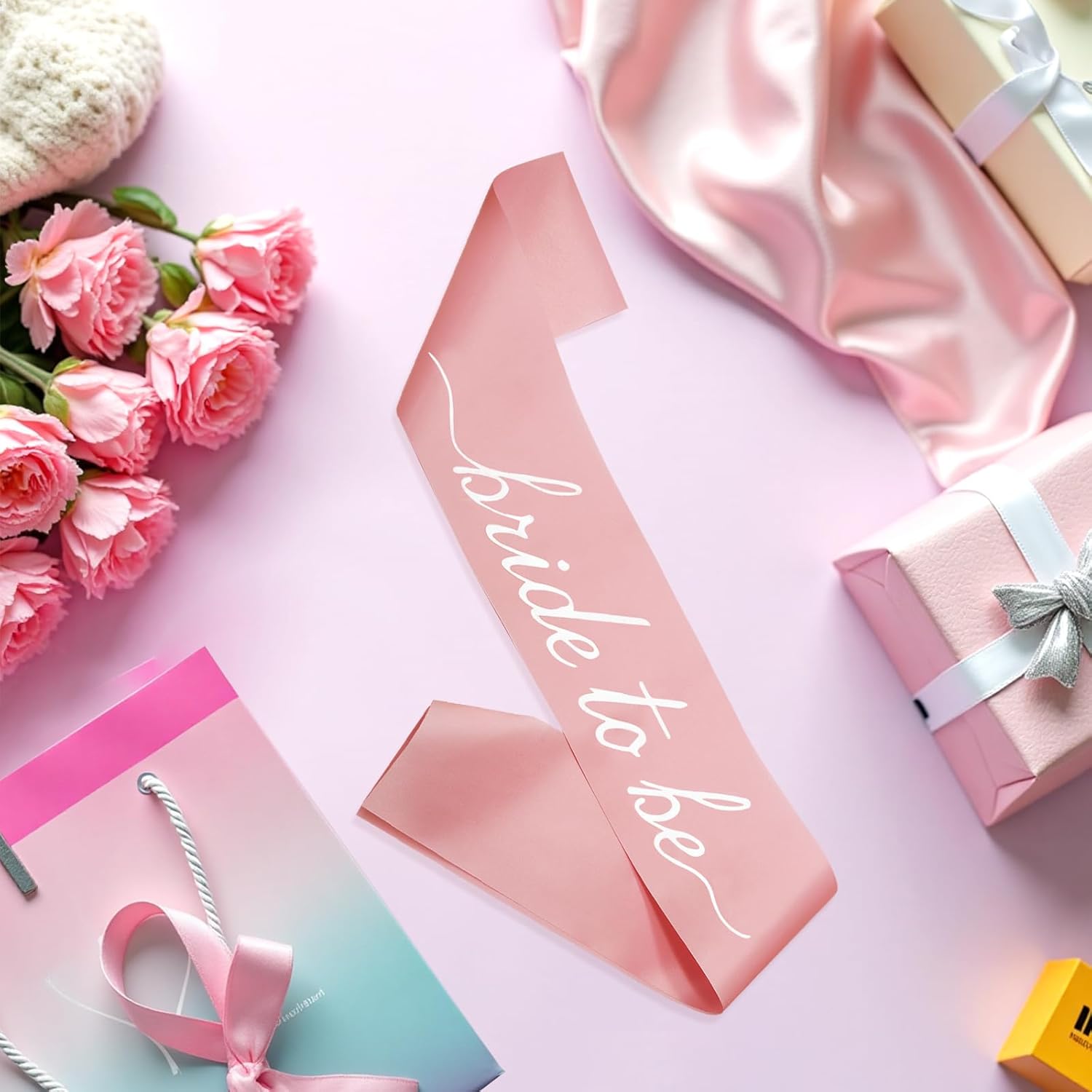 MILVOWOC Rose Glod Bride to Be Sash in Soft Satin, Bachelorette Party Wearable, Bridal Shower Accessory, Bach Decorations, Bridesmaid Present, Engagement Celebration Supplies,1 Pack