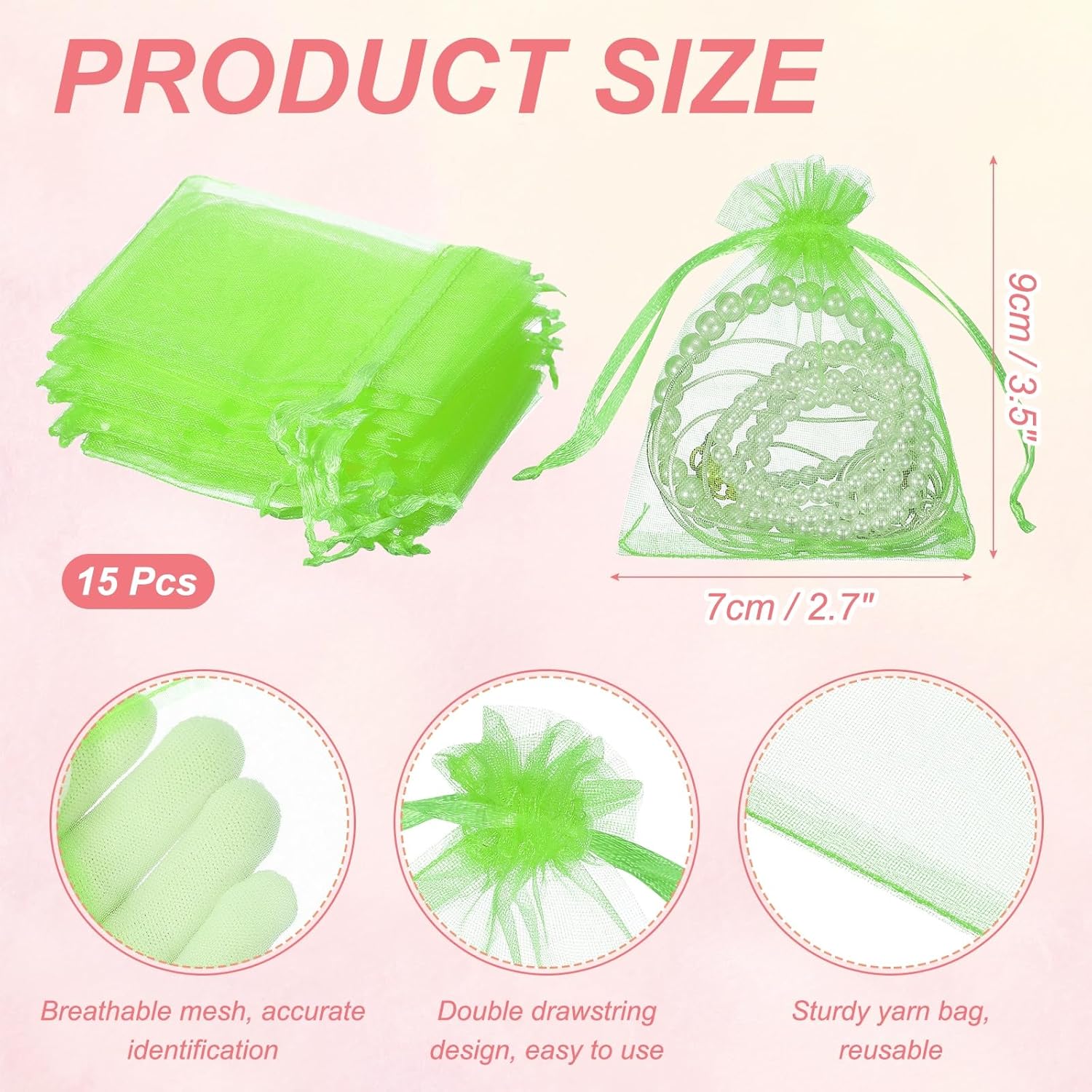 - Durable Material: These mesh gift bags are made of organza fabric, the yarn is fine and dense, durable, reusable, washable, mesh breathable.