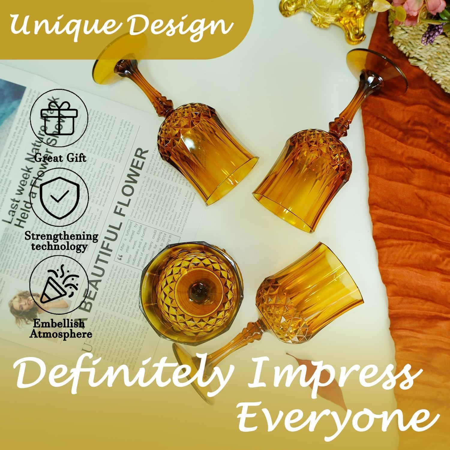 Plastic Wine Glasses,100PCS Amber Plastic Goblets Vintage Style Cordial Drinking Glasses for Wedding Reception, Grand Event Party Supplies (100, Amber)