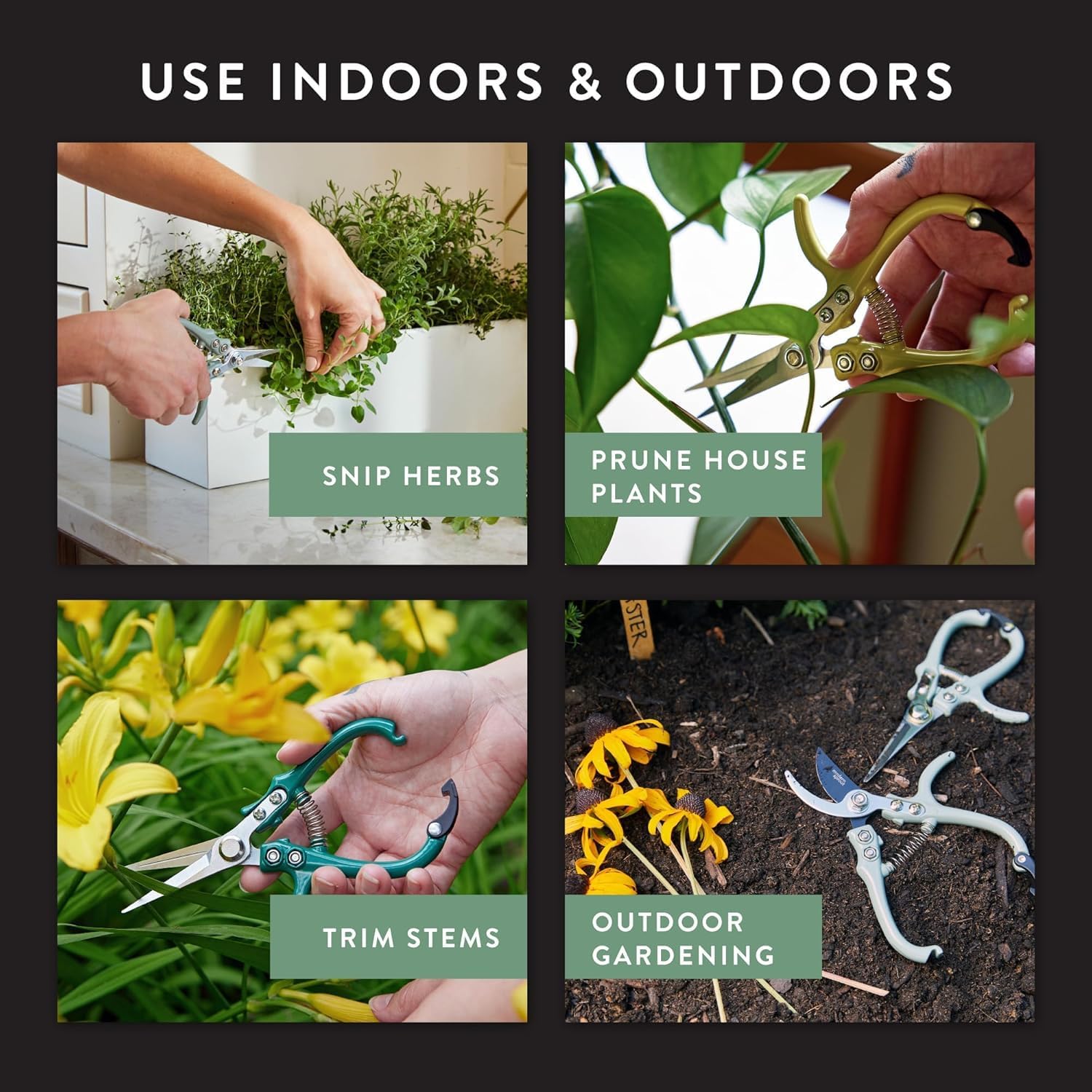 - Precision Plant Care for Professionals and Enthusiasts: These gardening shears are perfect for trimming herbs & flowers; Their compact, fine-tipped, rust-resistant high-carbon steel blades offer precise cutting in tight spaces, making them ideal for daily use in gardens, pots, and on delicate stems; Available in a convenient 4-pack - ideal for florists, landscapers, and nurseries who require multiple shears for continuous, high-volume trimming