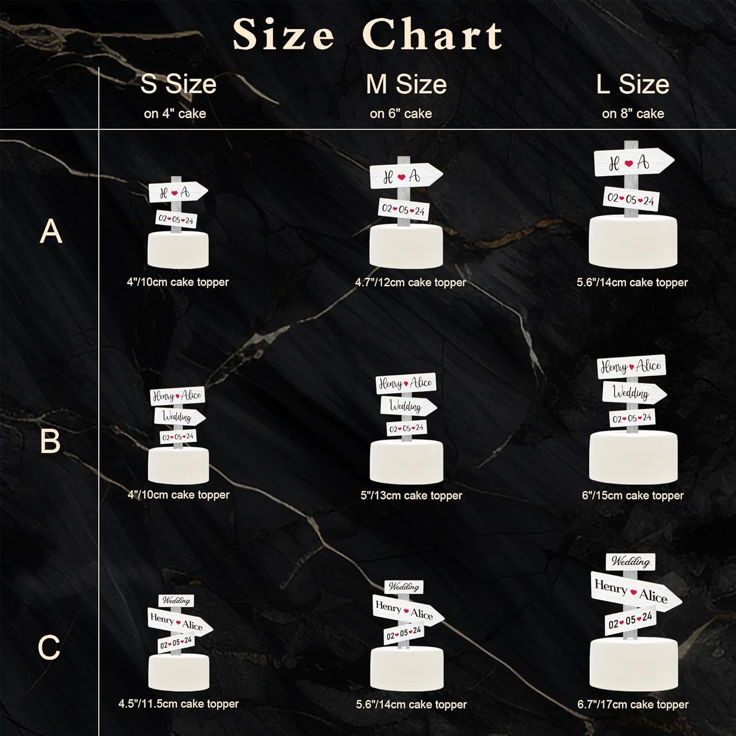 - Size options & Design options : The cake topper is available in 3 sizes and 3 designs. Please choose the best one to fit your cake.