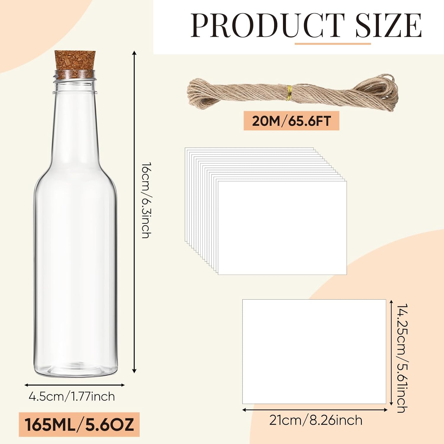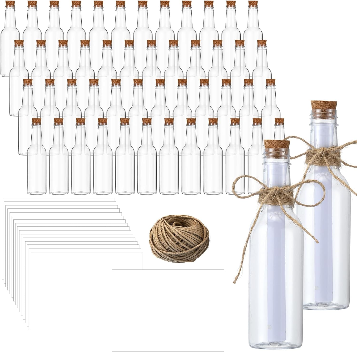 - Enough Package: the package includes 48 pieces of 5.6 oz message bottles with corks, comes with 60 sheets white printer paper and 1 roll of twine, which are sufficient to meet your various use