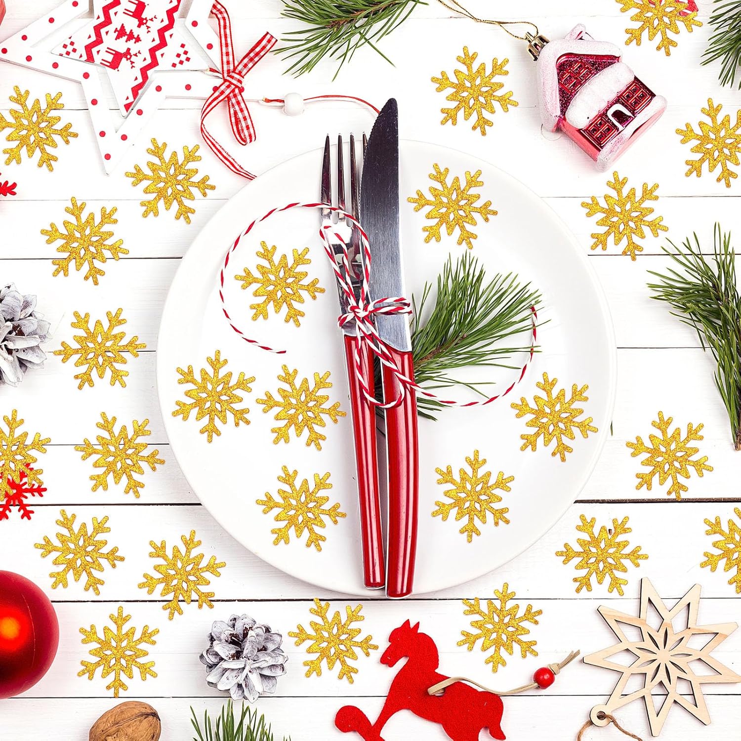 - Snowflakes Table Decorations: Contains Christmas snowflakes confetti, meticulously crafted and crafted to create a captivating sparkle. These beautiful snowflake decorations will add a touch of sparkle to your holiday celebrations, decorating tables and other accessories, creating a unique visual feast