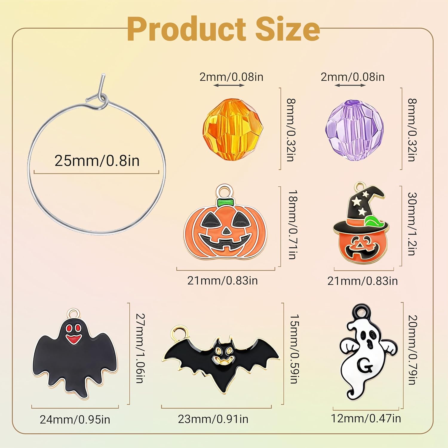 - SPOOKY DRINK MARKERS FOR GLASSES: Create your own ghoulishly unique drink markers! The collection features classic Halloween charms like jack-o'-lanterns, ghosts, witch hats, spiders, and skulls. Paired with shimmering orange and purple diamond-cut acrylic beads, these charms catch the light for an eerie glow, perfectly marking every glass of "witch's brew.