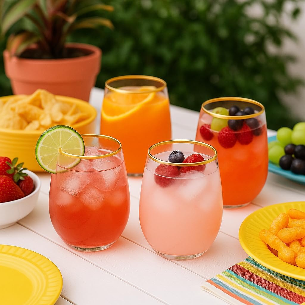 - Sleek & Safe Design for Guests: Made of thick BPA-free plastic with a wide base and smooth rim, these glasses are stylish yet safe—great for both adults and kids at your next gathering.