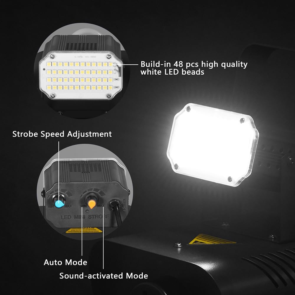 - 【Professional Strobe Light】This 12W strobe light comes with 48 high - quality white LED bulbs built - in, creating a dazzling strobe effect. It features two modes: auto and sound - activated. Additionally, you can set the strobe speed on your own
