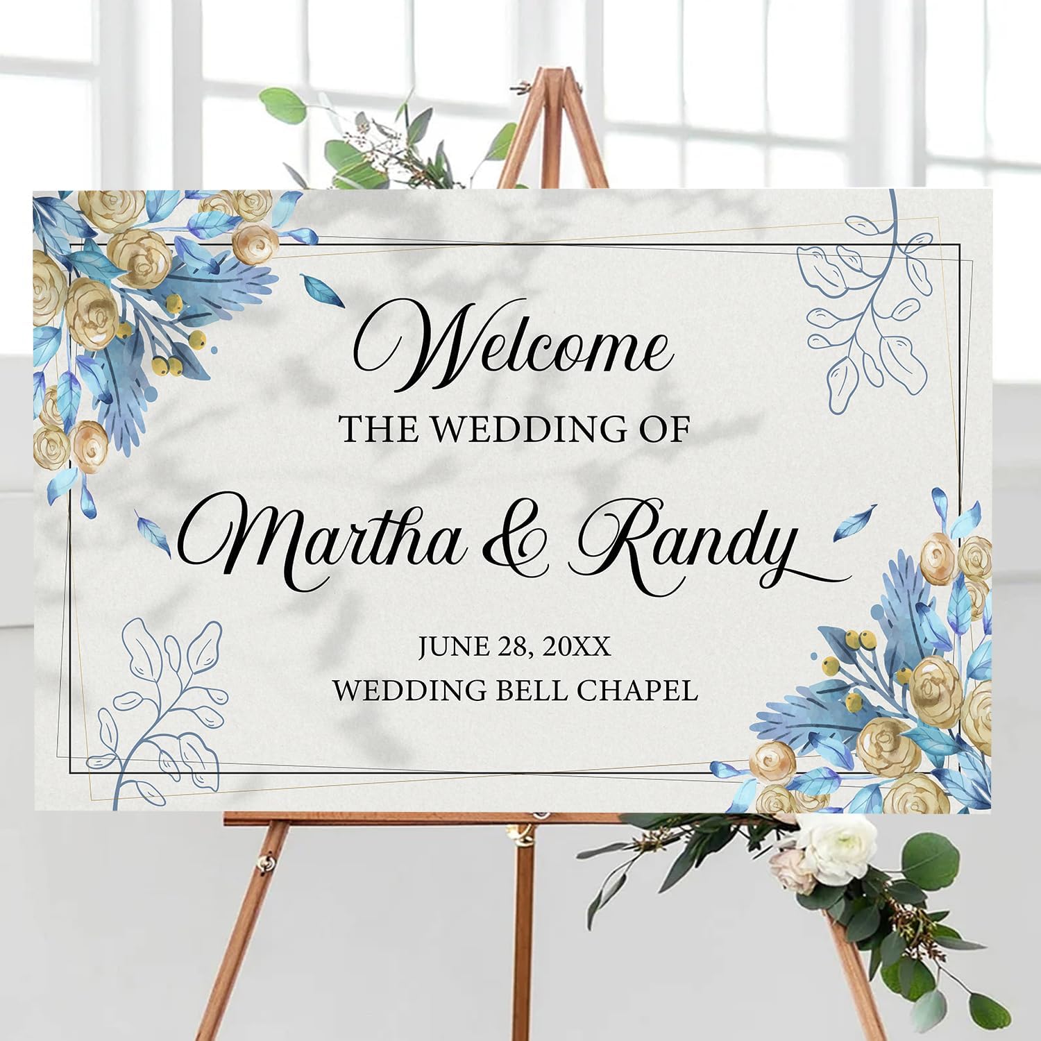 Editable Watercolor Wedding Welcome Sign, Boho Floral Template, Printable Blue Ceremony Decor, Minimalist Reception Signage