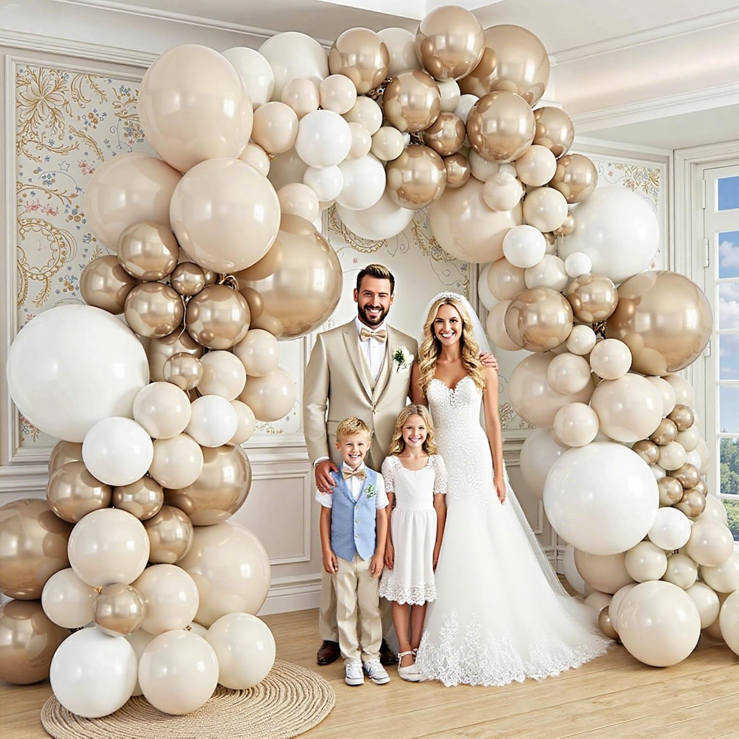 412Pcs White Sand Champagne Gold Balloon Arch Kit, Metallic Champagne Gold Neutral Balloons Garland for Boho Wedding Baby Shower Bridal Shower Engagement Anniversary Decorations