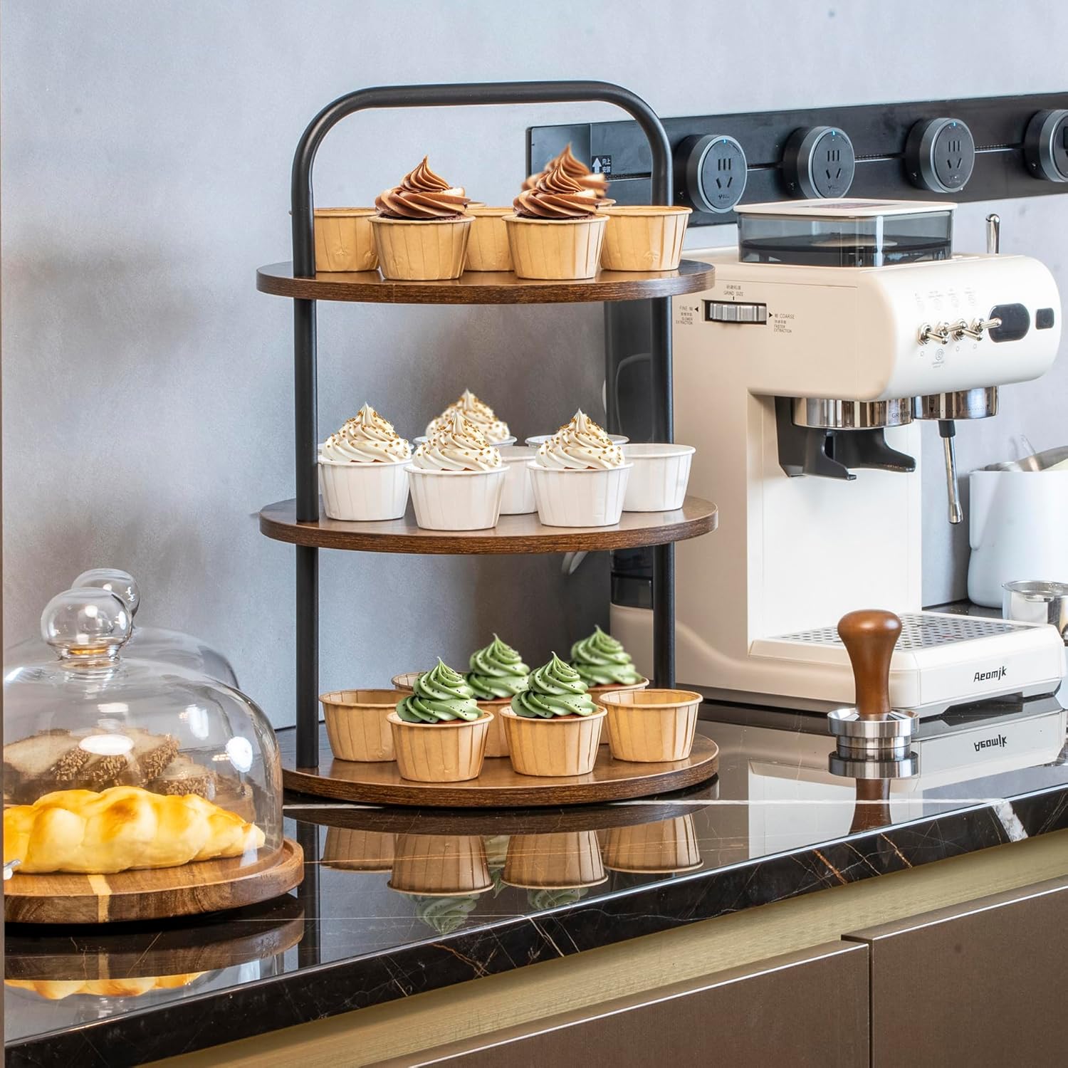 - 【Superior Warp-Resistant Trays】High-density fiberboard trays resist deformation better than natural wood; Sturdy powder-coated metal stand locks tiers securely, ensuring stability even with 50+ cupcakes; Rust-resistant finish for long-term use.