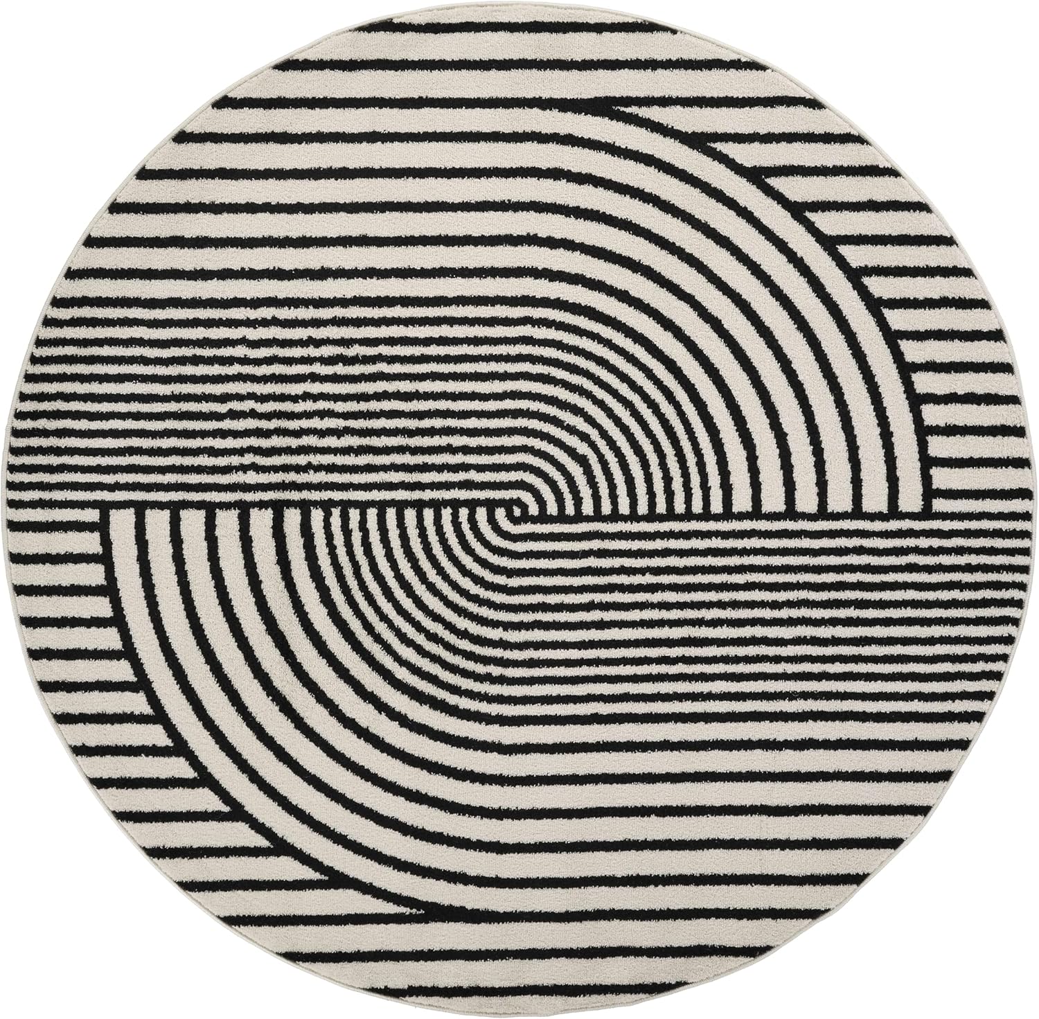 Abani Nuevo Collection Area Rug - Mid-Century Black and White Arch Knot Design - 6' Round - for Living Room, Bedroom & Office