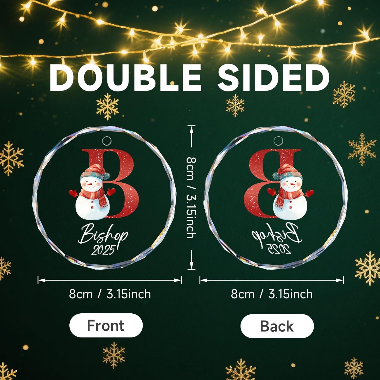 - CUSTOMIZED INITIAL ORNAMENT: Add a special touch to the holiday season by personalizing the ornaments with the recipient's initial, name, and the year. This monogram ornament initial for stocking is great for boys, girls, and adults alike, whether you're looking for a personalized christmas ornaments or a snowman/ santa claus name ornament. Each ornament makes a thoughtful gift and is perfect for creating initial letter christmas ornaments for the whole family.