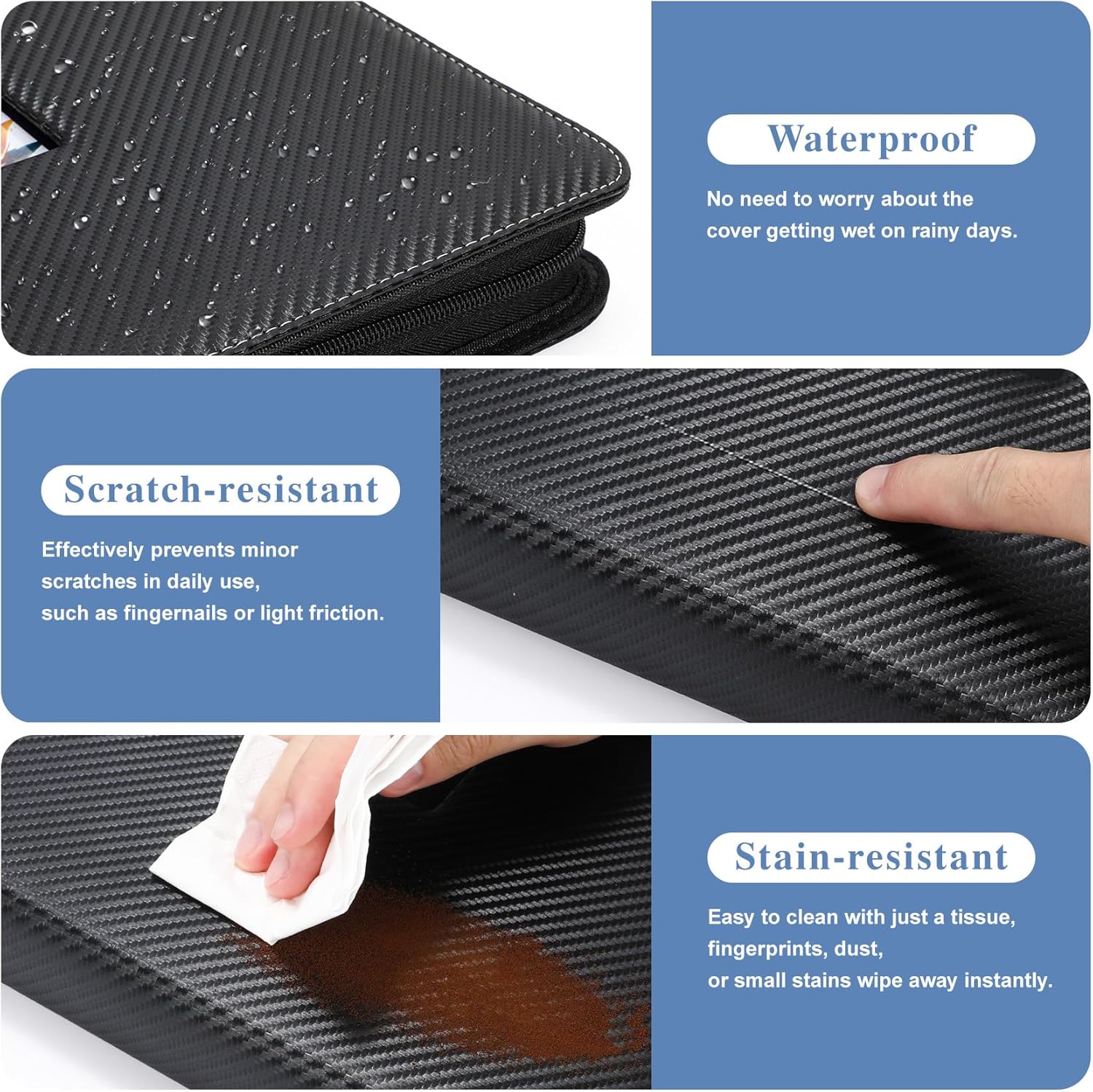 - Waterproof PU Leather Card Binder: The card binder for trading cards is crafted with waterproof PU leather, making it resistant to spills, dirt and staining. Whether it’s an accidental drink splash, fingernail marks, or daily dust, the card binder protect your TCG, MTG, YGO, photo, baseball, and sports cards from fading and stain.