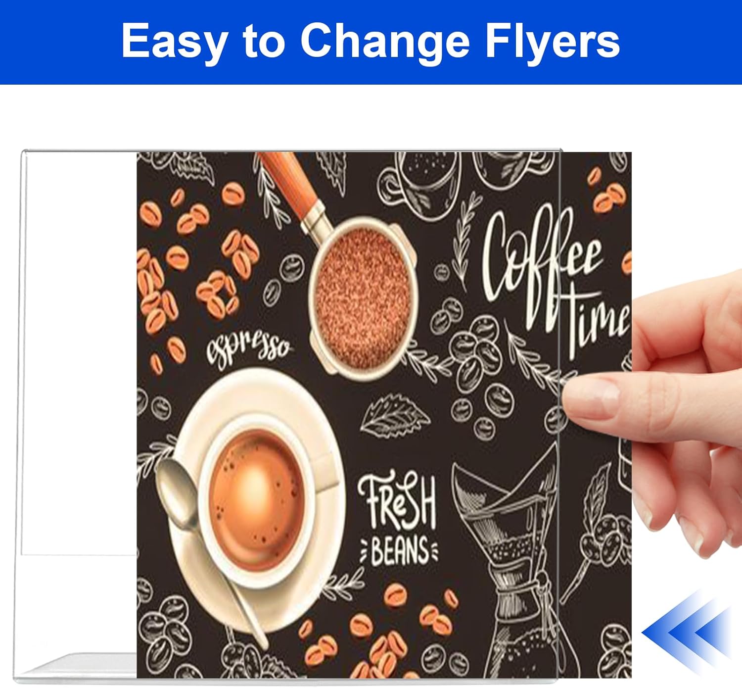 - 【SUPERIOR ACRYLIC MATERIAL】Acrylic display stand is made of high-quality acrylic material, which makes it look crystal clear, allowing you to get a better effect when displaying ads and menus. The simple and impurity-free appearance makes it look elegant. This flyer holder will not be yellow, blurred, or warp. If the surface gets dirty, it can be easily wiped clean.