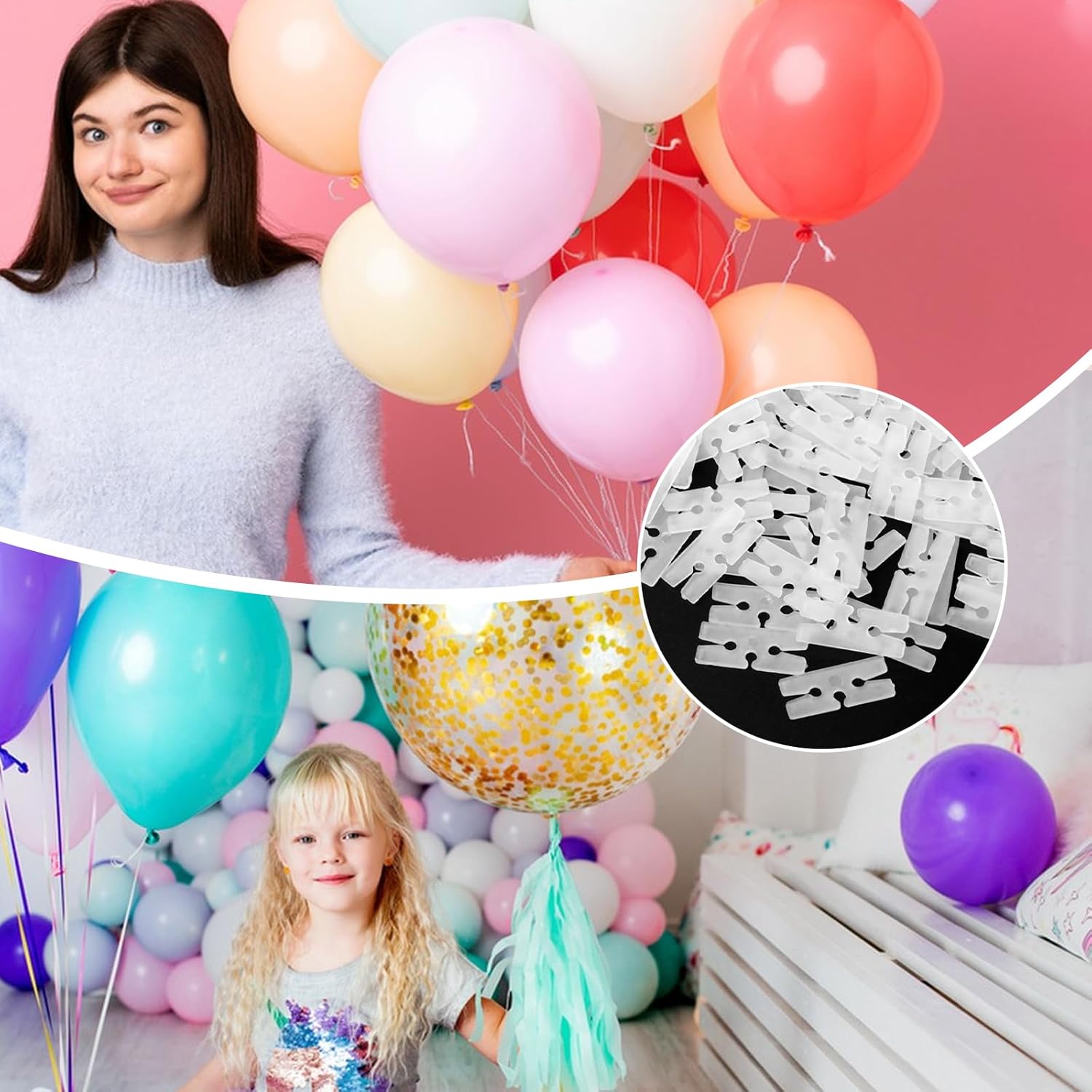 - 100-Pack of H-Shape Balloon Clips - Includes 100 clear plastic balloon ties, perfect for bulk balloon decorating—enough for large events like weddings or birthday parties, with spares for last-minute additions.