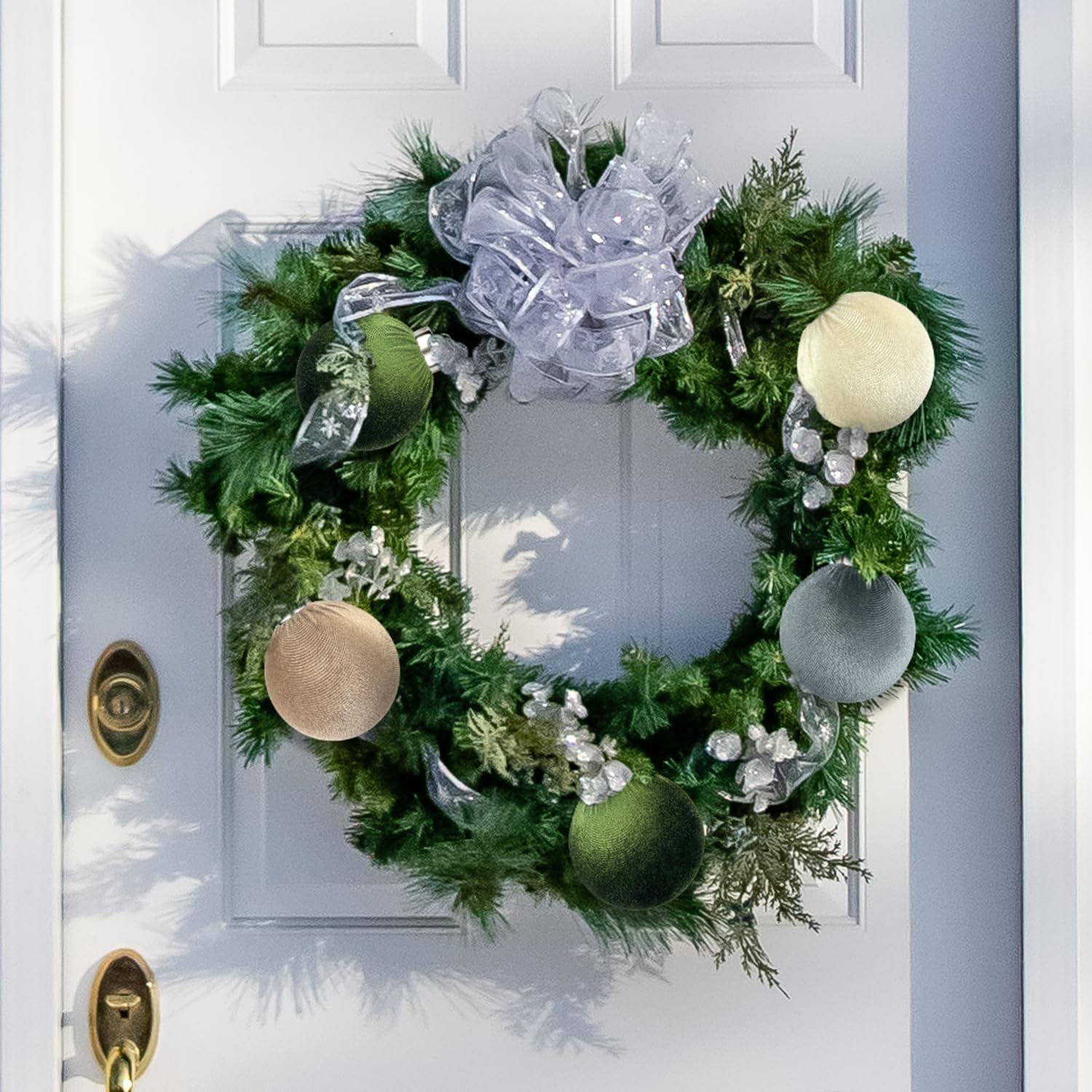 - Velvet Christmas Balls - This neutral-toned set includes 15 large ornaments: 6 in sage green and 3 each in light brown, beige, and gray. Each measures an impressive 3.15 inches, striking the perfect balance of scale and sophistication for your Christmas tree.