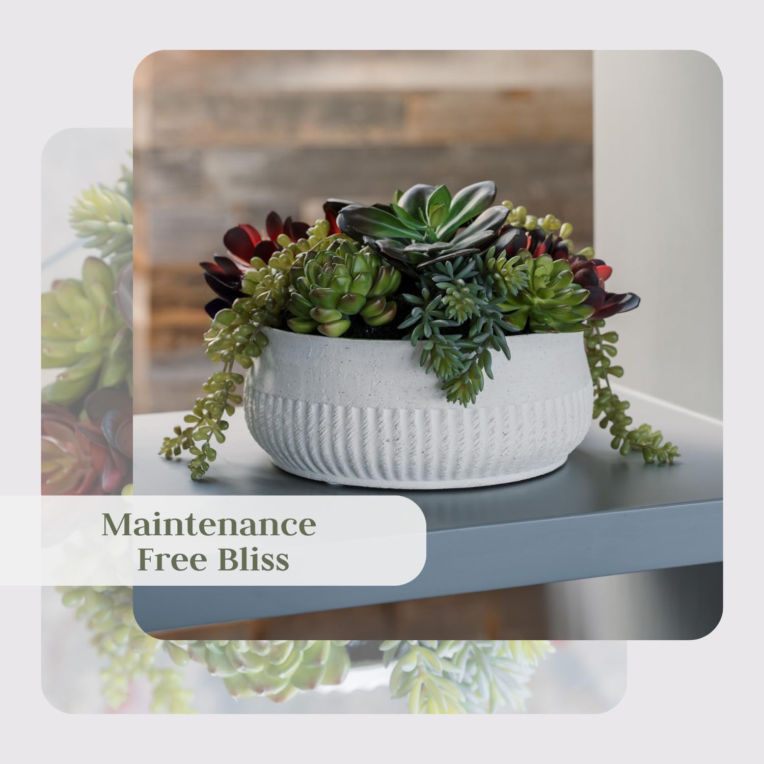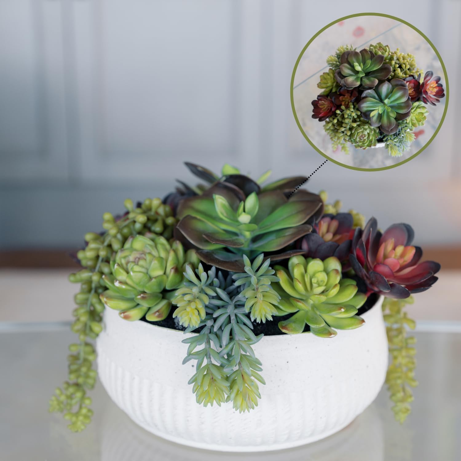 - REALISTIC STATEMENT PIECE: Round Faux Succulent Arrangement, 12" Premium Artificial Indoor Plant Enhances Interior Design, Display on any Surface in Your Home Adding an Inviting Touch of Nature, White Planter Pot Included