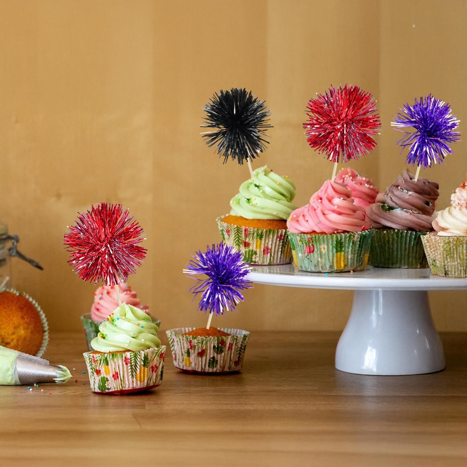 - -Premium Material: These Foil Firework Cupcake Toppers are made of high quality foil and food-grade toothpick, very safe to put them on cakes, cupcakes, ice cream, fruits, pie, dessert, cheese or any dish and food appetizer you want to decorate.