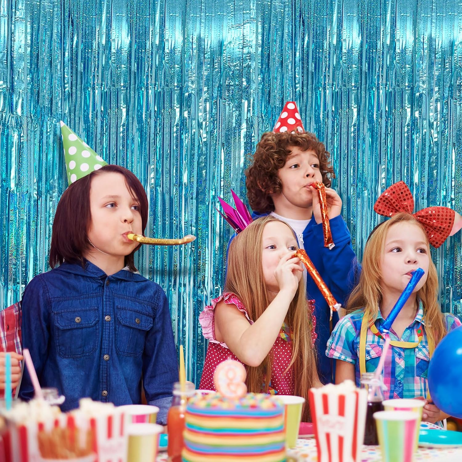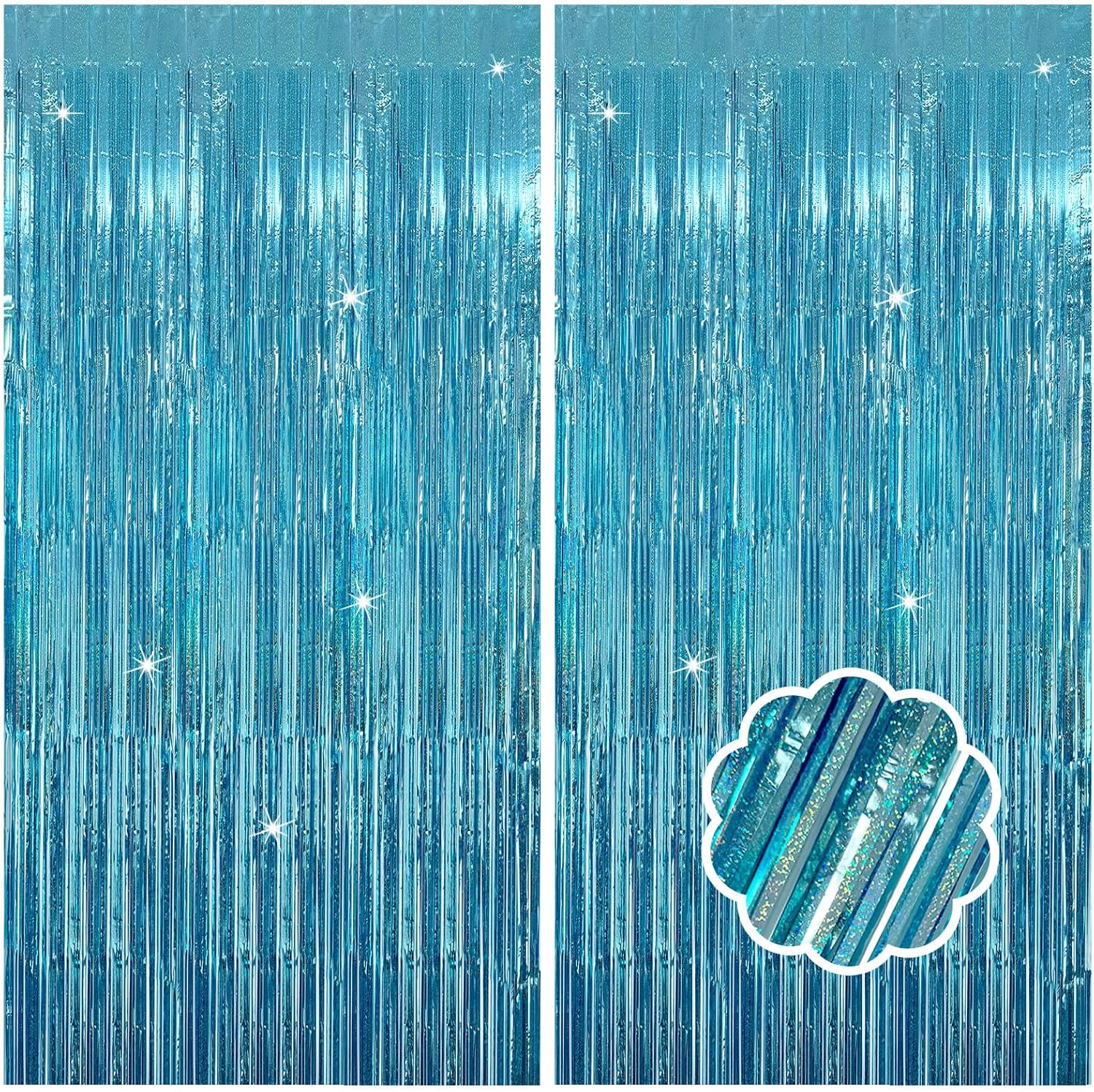 2 Pack Blue Streamers Party Decorations Tinsel Foil Fringe Curtains Photo Booth Celebration Birthday Decorations Ocean Party Decorations