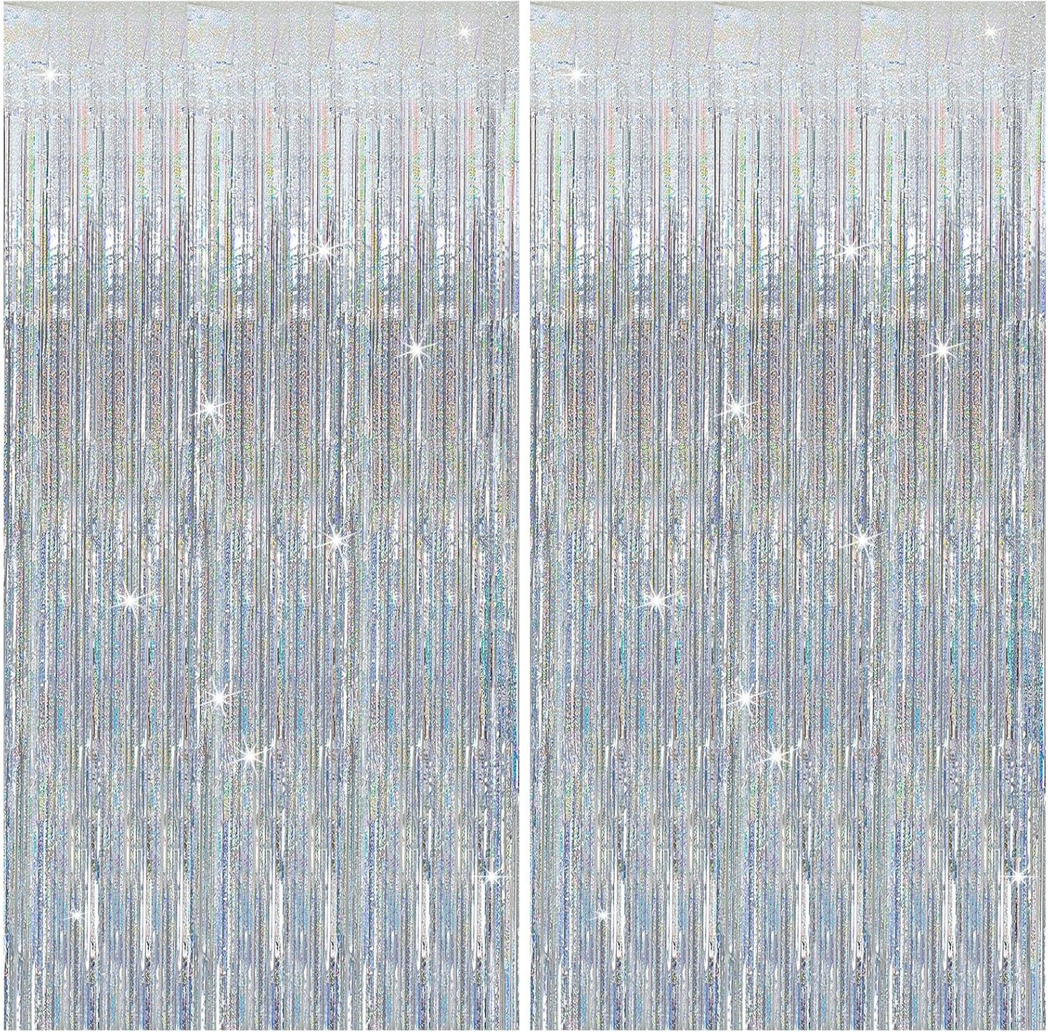 2 Pack Silver Glitter Backdrop Party Decorations Tinsel Streamers Foil Fringe Curtains Shimmer Wall Backdrop Christmas Birthday Bachelorette Party Wedding Decor Supplies