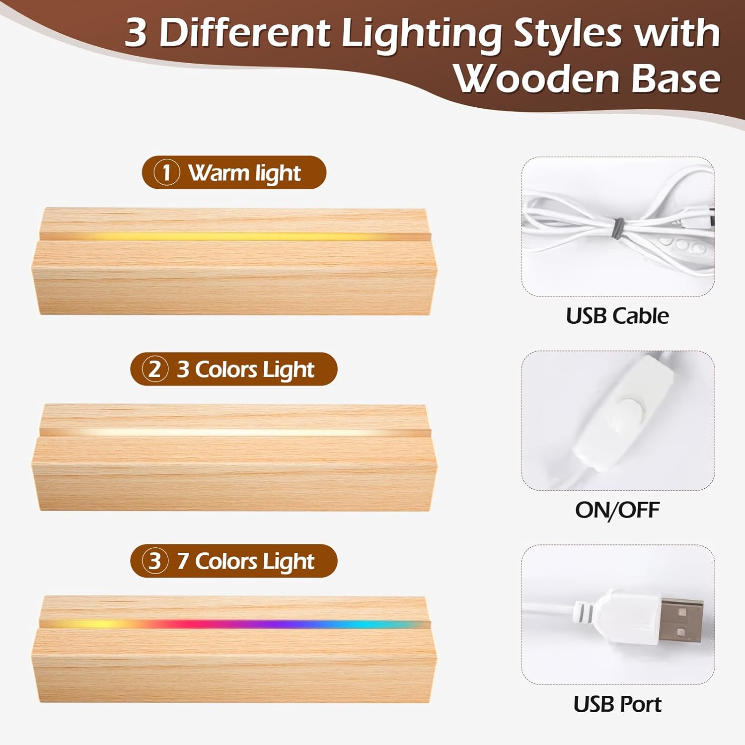 - Multiple Night Light Options: The custom acrylic photo frame’s wooden base is available in three lighting styles: warm light, 3-color light, and 7-color light. These options let you create the perfect ambiance for any occasion, adding romantic warmth to your home decor.
