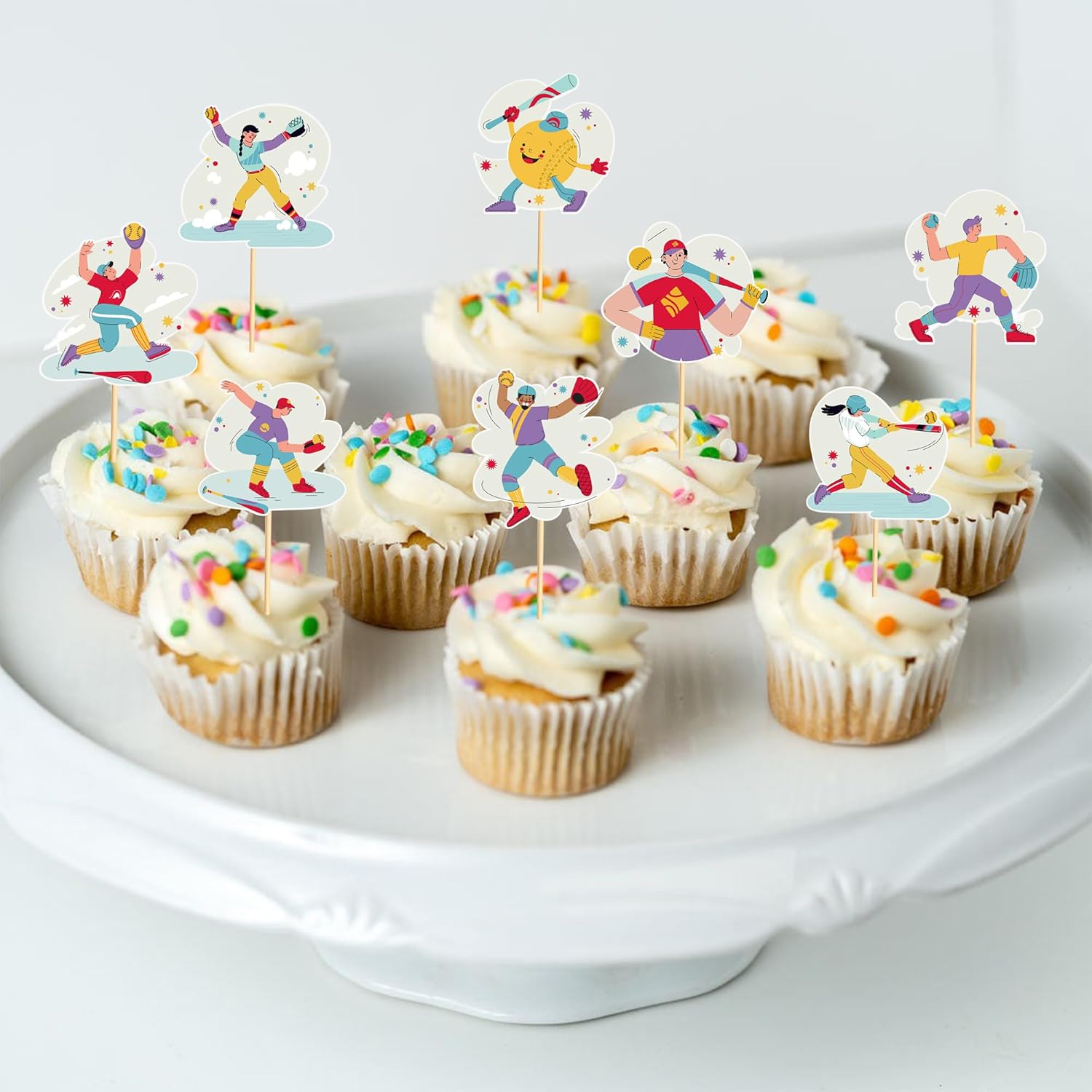 24pcs Baseball Cupcake Toppers Sports Game Baseball Players Cupcake Picks for Sports Baseball Theme Baby Shower Kids Boys Girls Birthday Party Cake Decorations Supplies