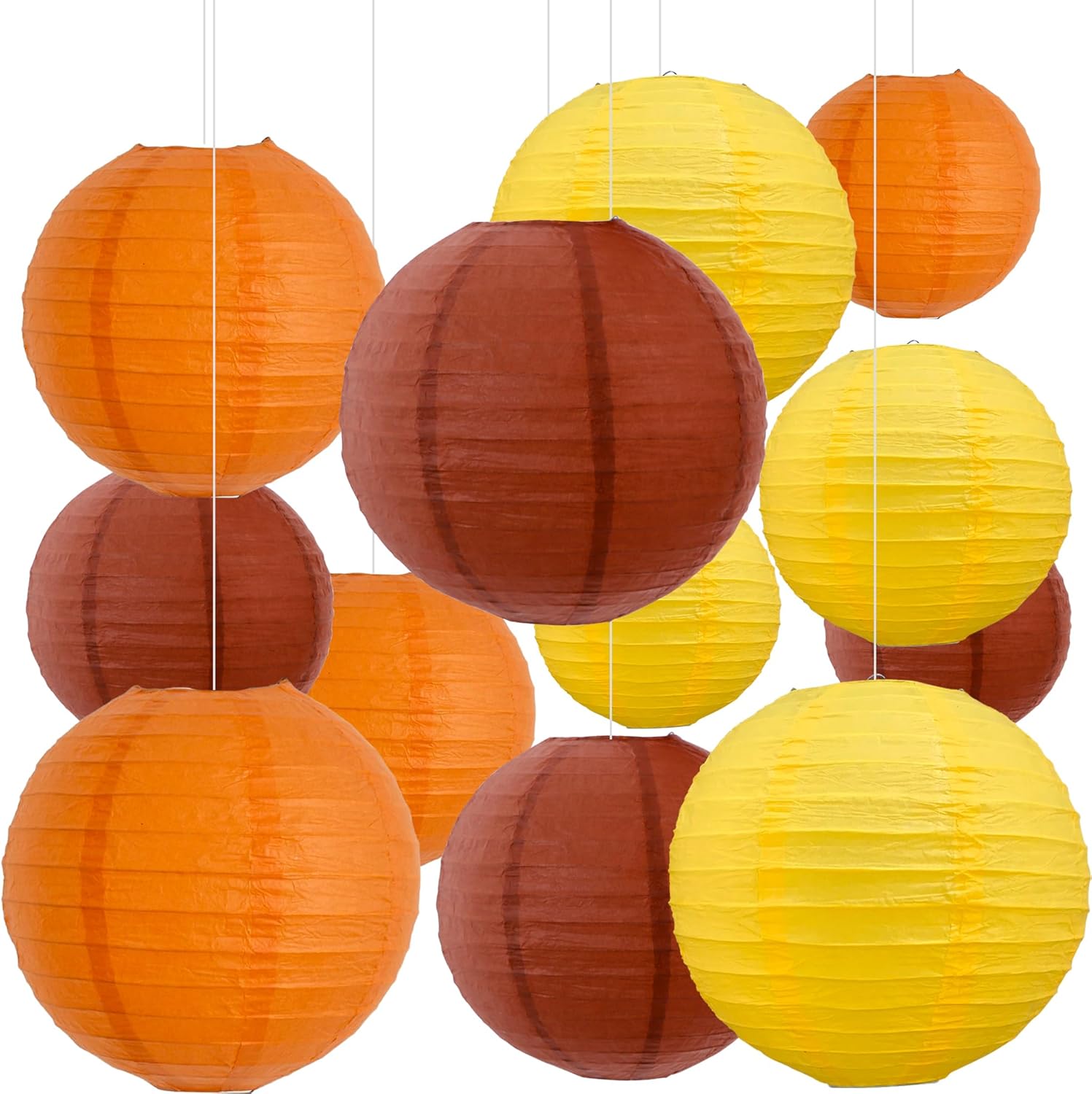BEISHIDA 12Pcs Fall Orange Paper Lanterns Decorative Yellow Orange Brown Hanging Round Paper Lanterns Lamp for Thanksgiving Harvest Fall Wedding Autumn Birthday Decor,Outdoor Party Decoration