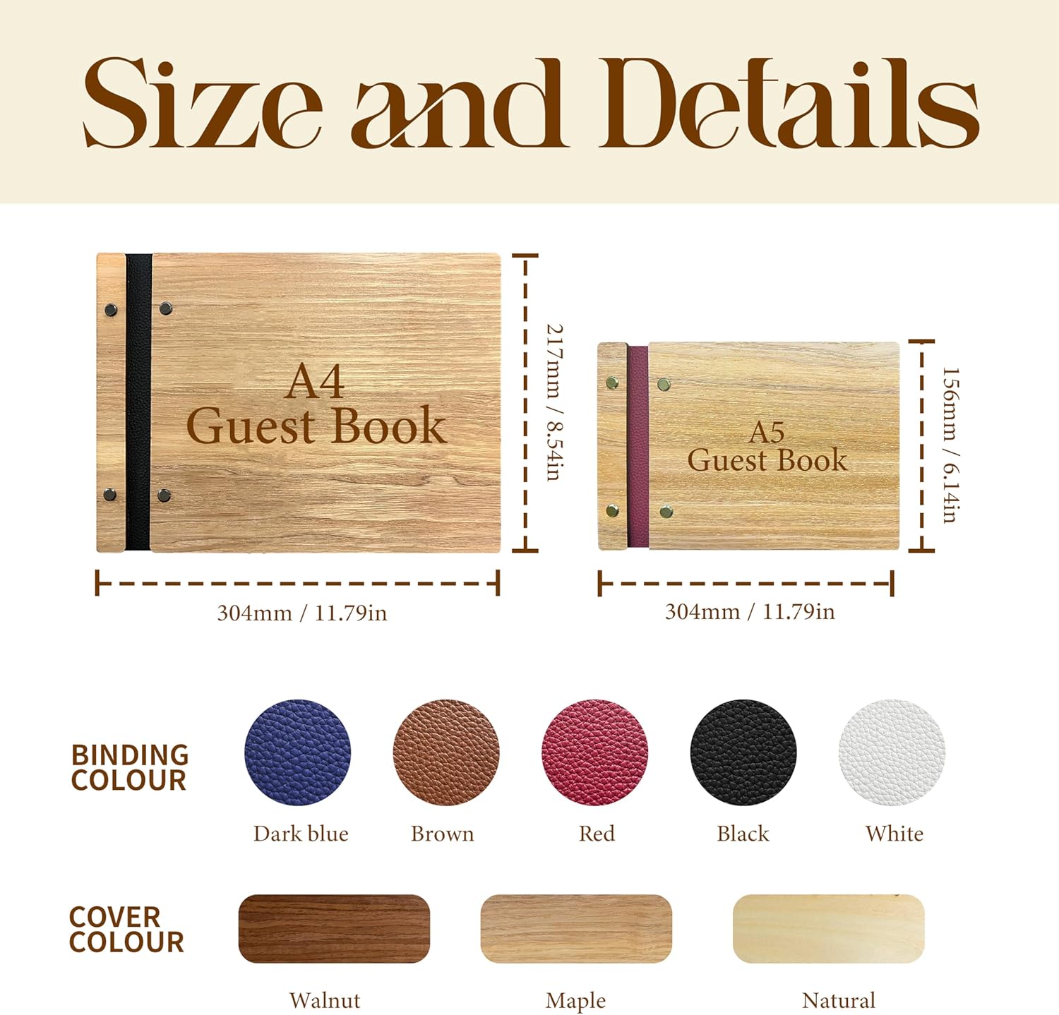 - Beautiful & High-Quality Cover - The Wooden Guestbook Cover is made of high quality genuine leather which can be freely matched with customization options. With a wood cover that is 3.5–4 millimetres thick and sturdy metal spiral binding, this sign-in book provides a flat and secure writing surface, ensuring an effortless experience for all your guests.
