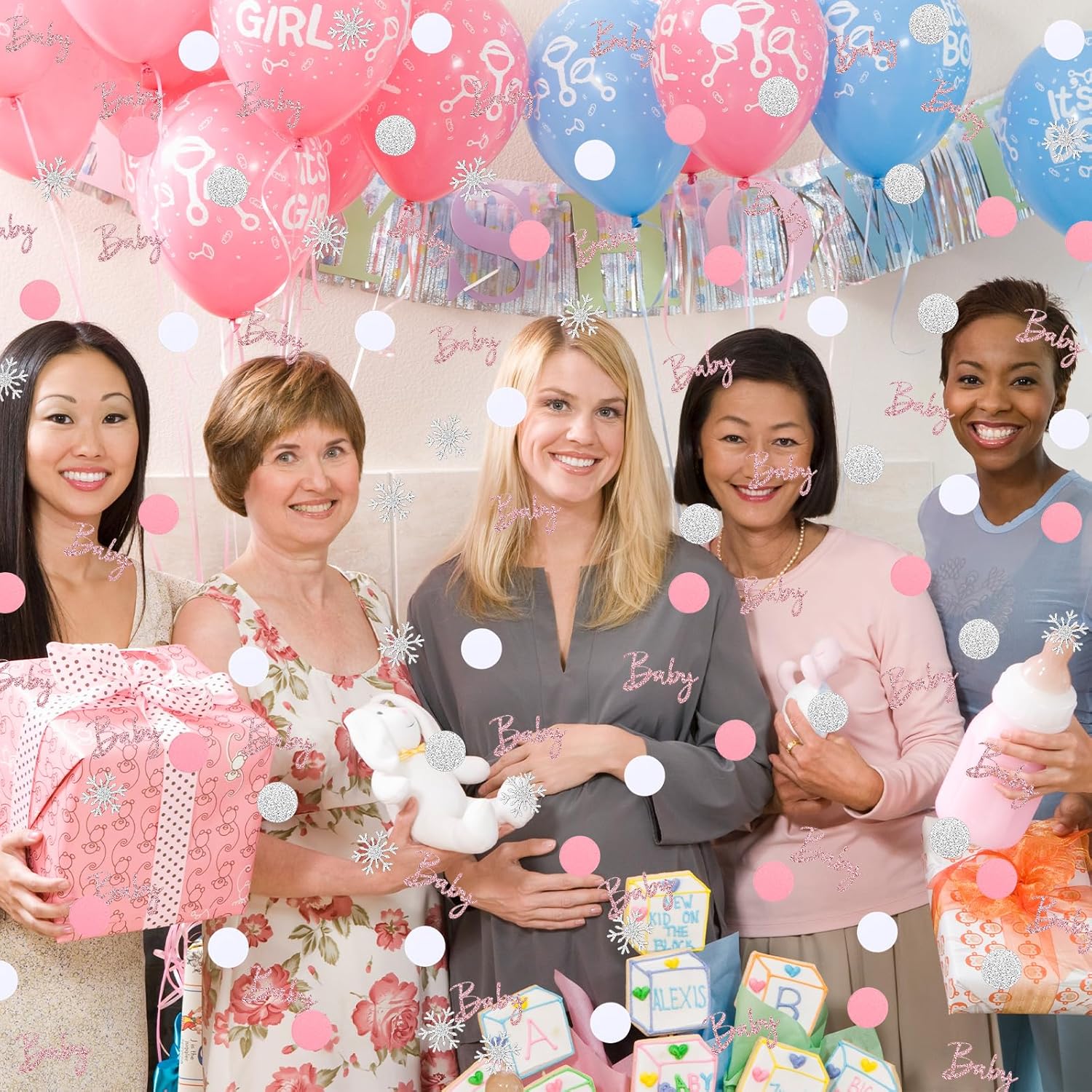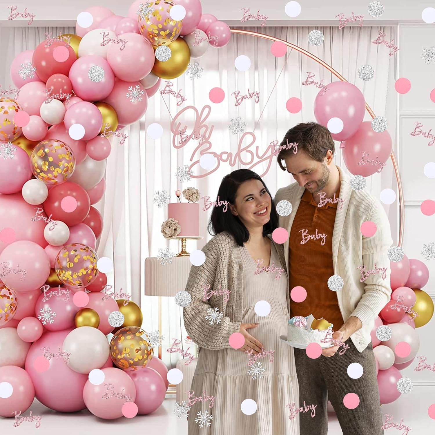 - Diverse Patterns: Winter baby shower decorations are designed with exquisite and diverse pattern, including silver flashing snowflakes, pink-themed "Baby",match with white, silver and pink polka-dot confetti. Various patterns are combined with snowflake elements, winter wonderland baby shower decoration is suitable for Christmas and winter atmosphere, and adds a romantic, warm and seasonal visual experience to the baby shower