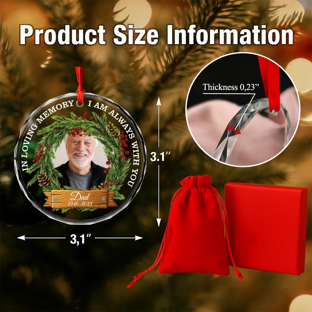 Personalized Memorial Glass Ornament 2025 – I Am Always with You Ornament, Custom Photo Memorial Christmas Ornament, Christmas|Birthday|Anniversary Keepsake for Loss of Loved One (M4)