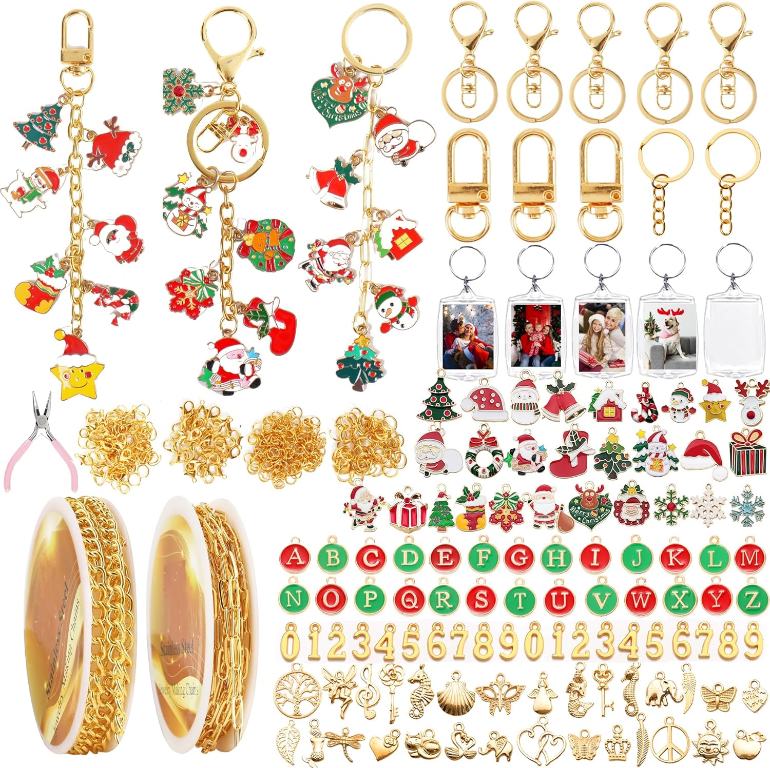 Namifin 374 Pcs Christmas Keychain Making Kit with Charms & Keychain Clips - DIY Bag Charms, Pearl Keychains, Photo Keychains, Personalized Gifts for Friends Small Business