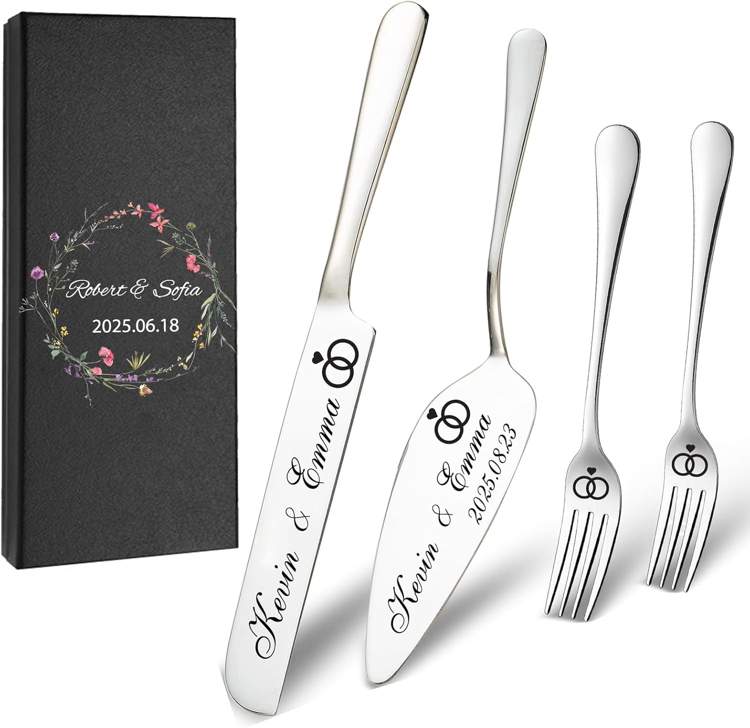 - Personalized Perfection: Our engraved custom cake cutting sets for weddings are tailored to your preferences, featuring names, dates, or special messages, making them a truly personal and unforgettable addition to your celebration.