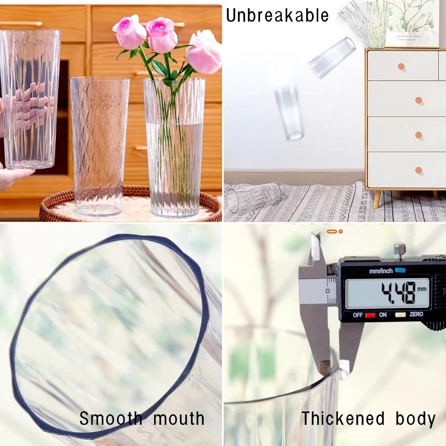 - đ·ăSturdy and durableăThese vases are made of high-quality acrylic and can withstand daily use without breaking. Say goodbye to fragile glass vases. Our indestructible tall windproof vases give you peace of mind and focus on creating amazing flower arrangements without worrying about accidents or accidents.
