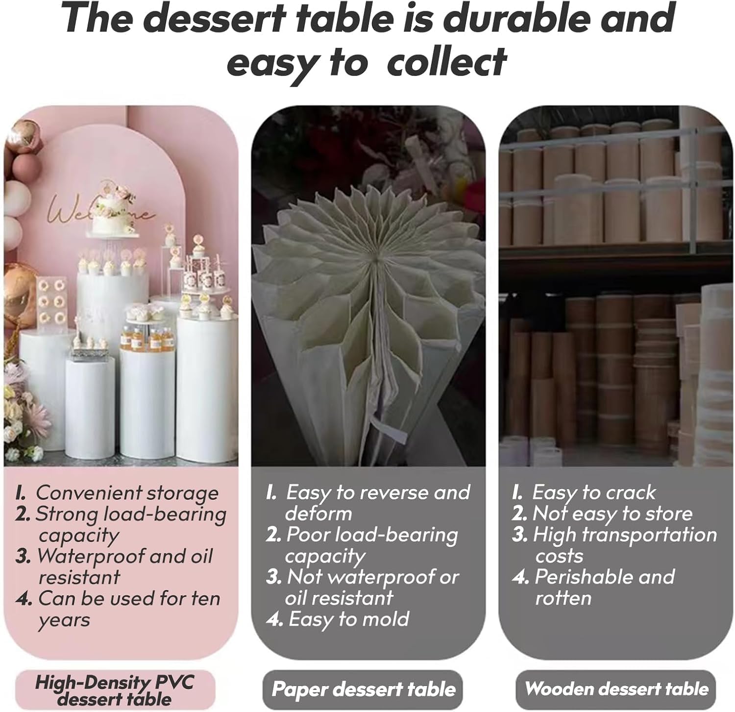- 3Pcs Round Cylinder Stand Pedestal: Large cylinder pedestal stands for parties includes five white column stands, 15.75*35.43''(L),14.17*29.52''(M),12.99*23.62''(S), 3 different sizes of cylinder pedestal display plinth pillars to give you full choice.