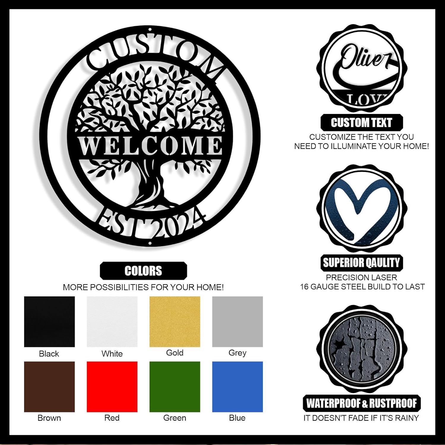 - Personalized & Name Customizable -- Click "CUSTOMIZE NOW" and enter the name or text. Our personalized Tree of Life Metal Sign designs make it unique, beautiful and elegant to create a perfect personalized family name sign for you. This custom last name sign is customized with your last name, first names and established date, will look beautiful indoor and outdoor any home.