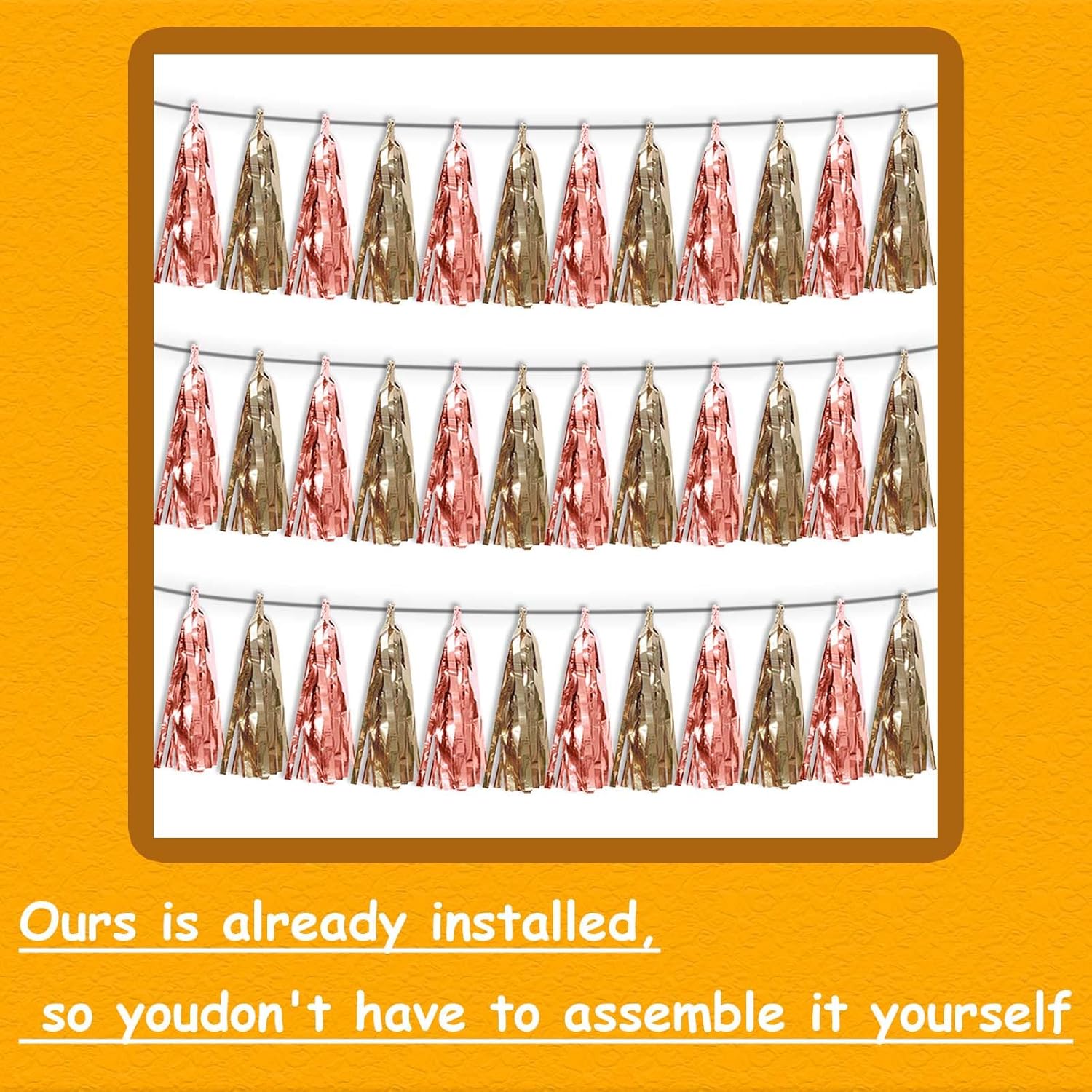 - 【Package Includes】The total length of the rose gold and champagne gold birthday tassels banner is 30 feet, divided into 3 strips, each 10 feet long. Each banner contains 15 tassels, and each tassel measures 14 inches, for birthday decorations many occasions uitable for Patriotic display, Homecoming Float, Christmas Float, ecorative metal trailers, graduation floats etc