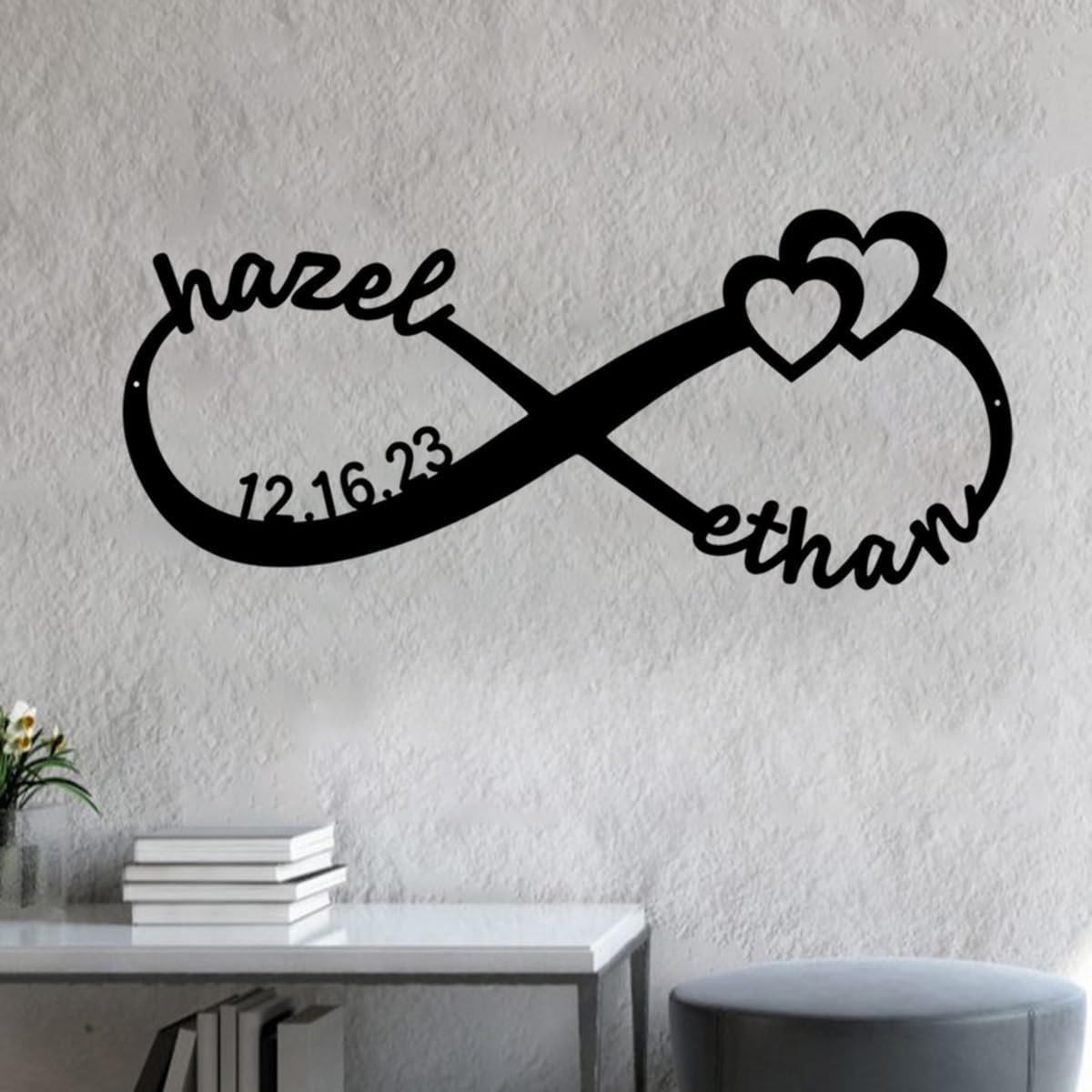 - Custom Heart Metal Wall Art: This stunning personalized wall art features two intertwined hearts and custom names, making it the perfect piece for your home decor or as a thoughtful gift.