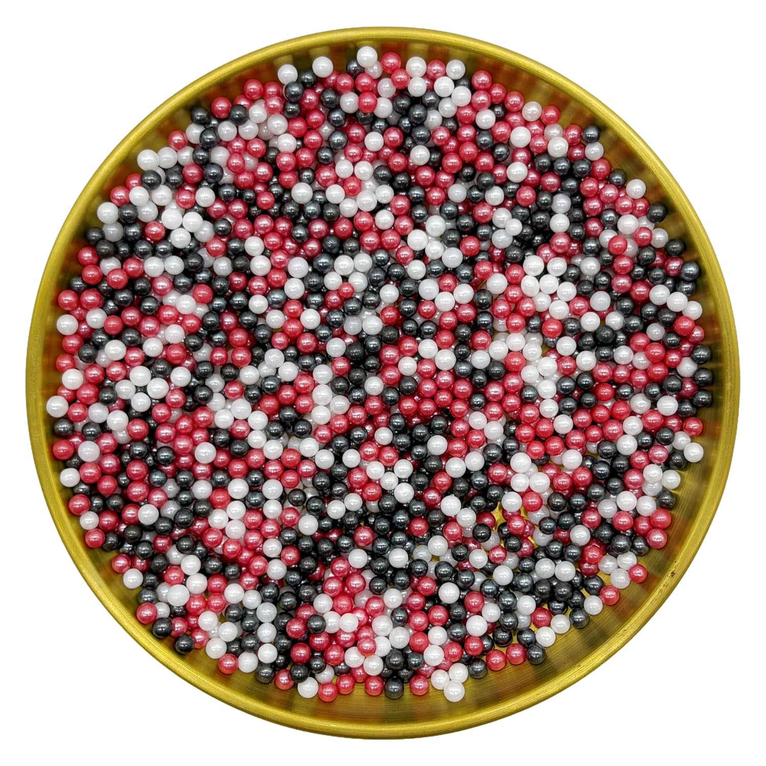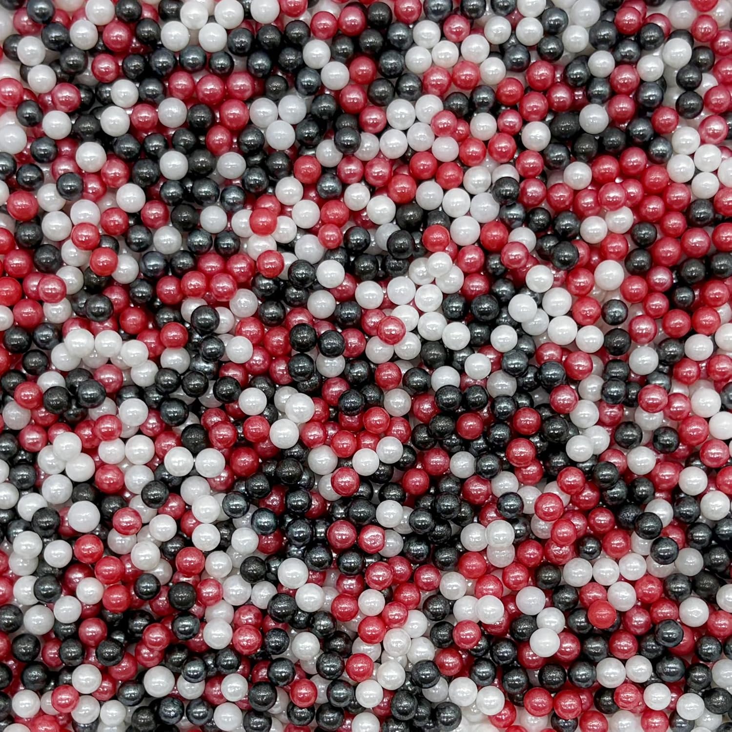 Edible Red & Black & White Pearl Sugar Sprinkles Candy 4mm Mini Pearls Cake Decorations Cupcake Toppers Cookie Decorating Perfect for Wedding Party Valentine Halloween Christmas Supplies 3OZ