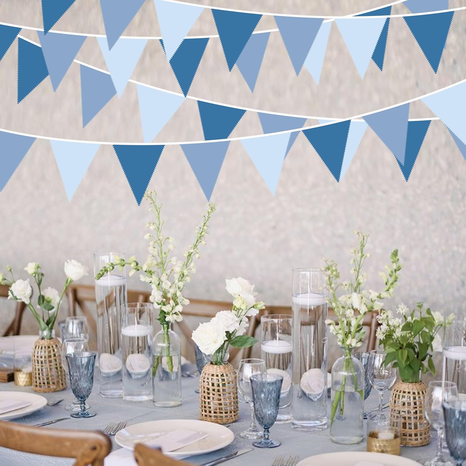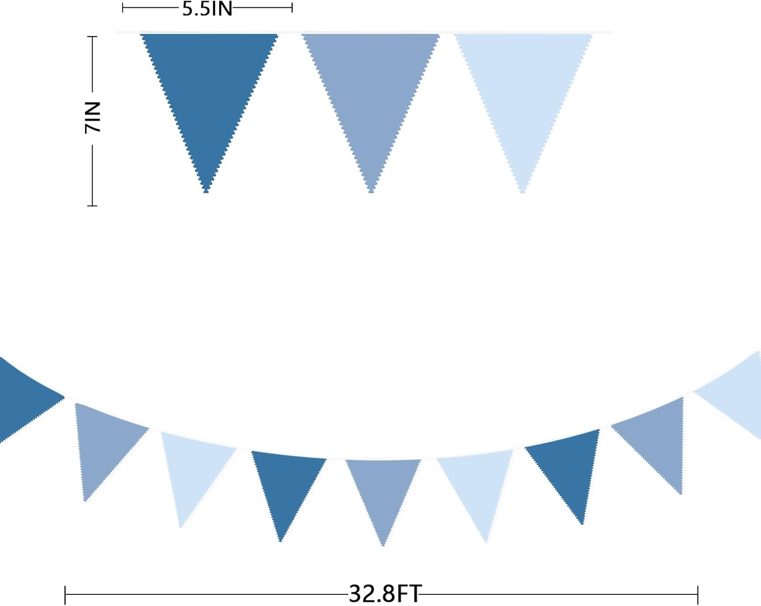 - Package Including:1 pack retro blue fabric bunting banner garland in blue, dusty blue and light colors, with 36pcs flags in 10M/32.8Feet. Flag Size: 5.5in width x 7in height