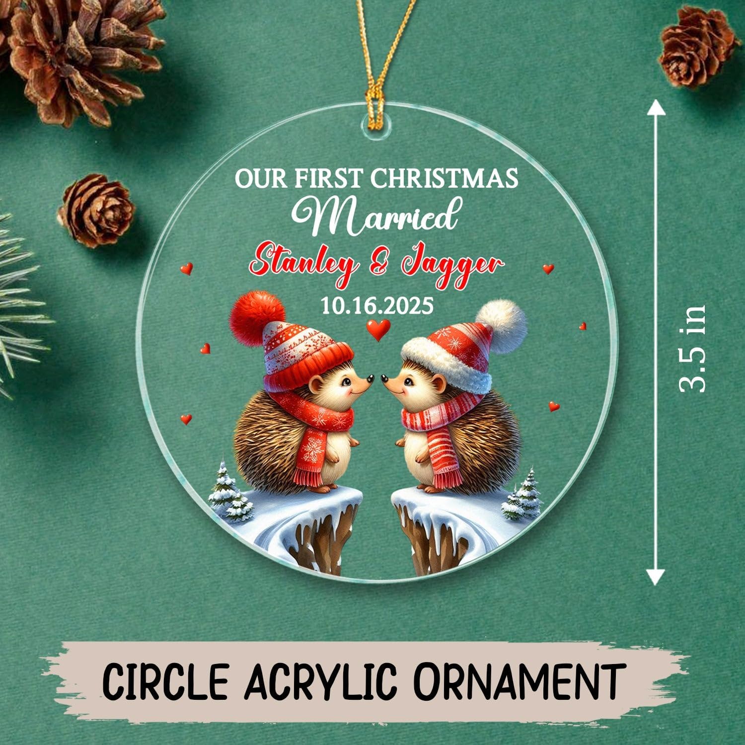 Our First Christmas Married Ornament, Custom Date/Name Mr & Mrs Hedgehog Ornament Gift for Newlyweds Bride & Groom, Personalized Couple Hedgehog Married Christmas Ornaments for Wedding Anniversary