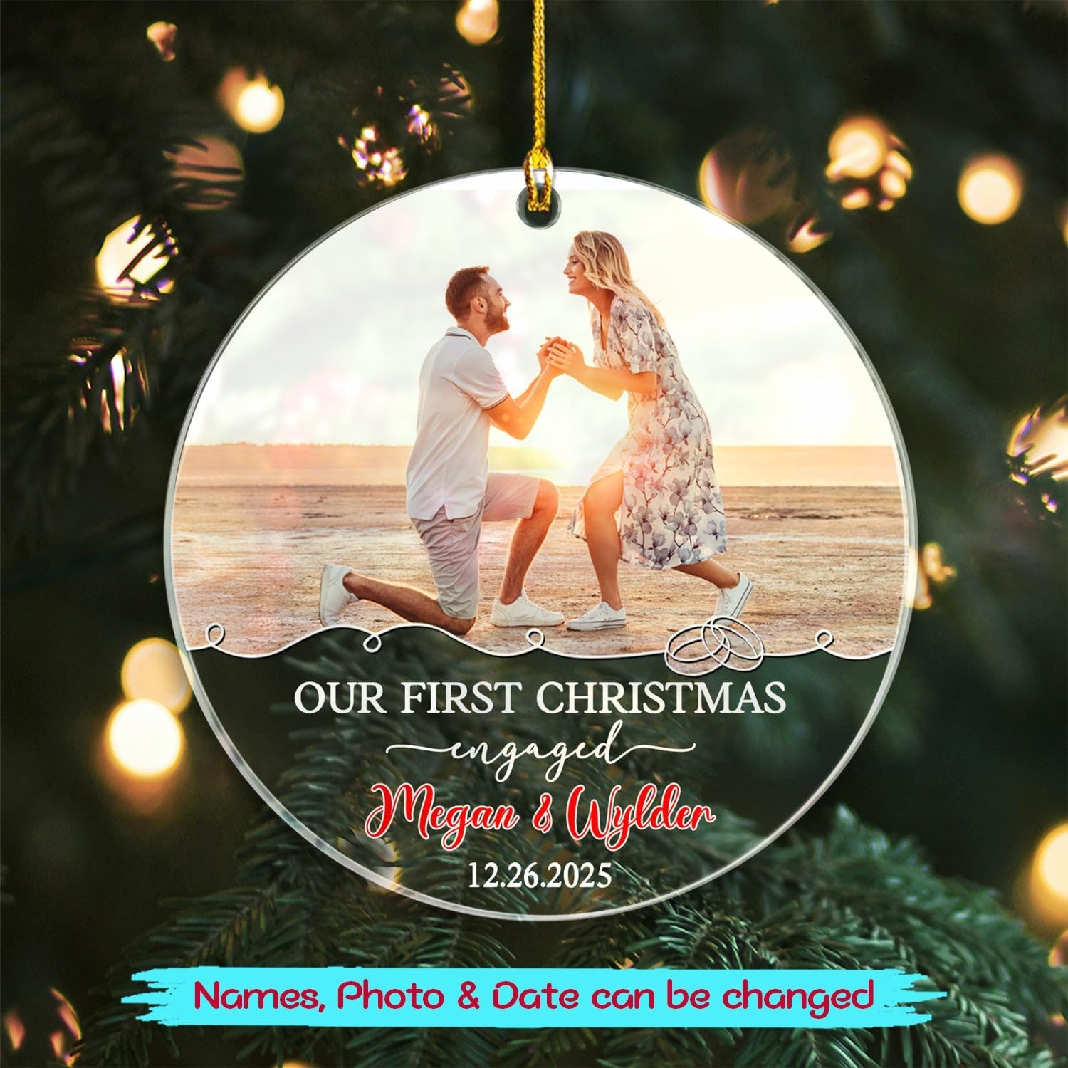 Our First Christmas Engaged Ornament, Customized Name Date & Photo Couple Just Engaged Ornament Gift for Bride to Be/Fiance/Fiancee, Personalized Add Photo Engagement Anniversary Xmas Ornaments