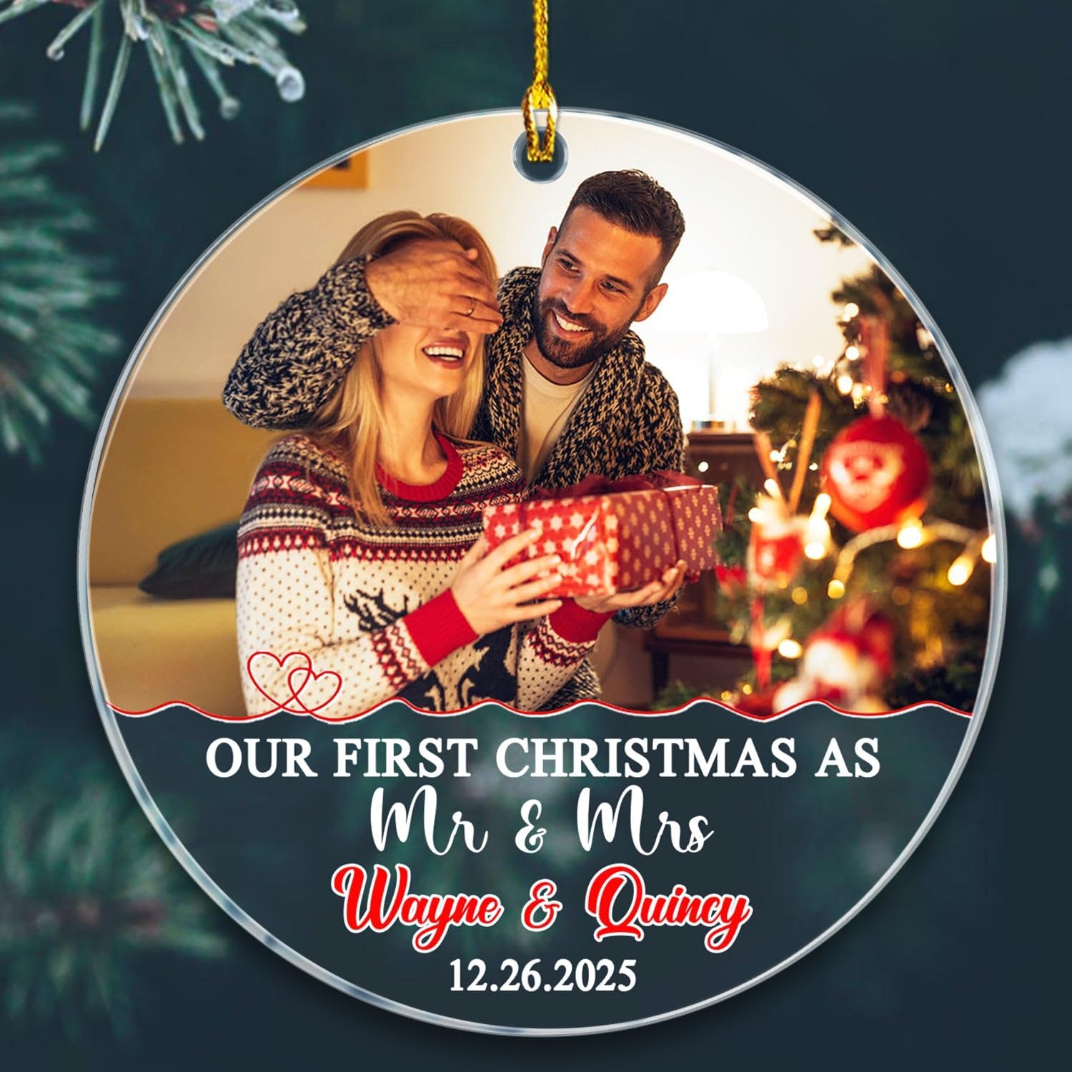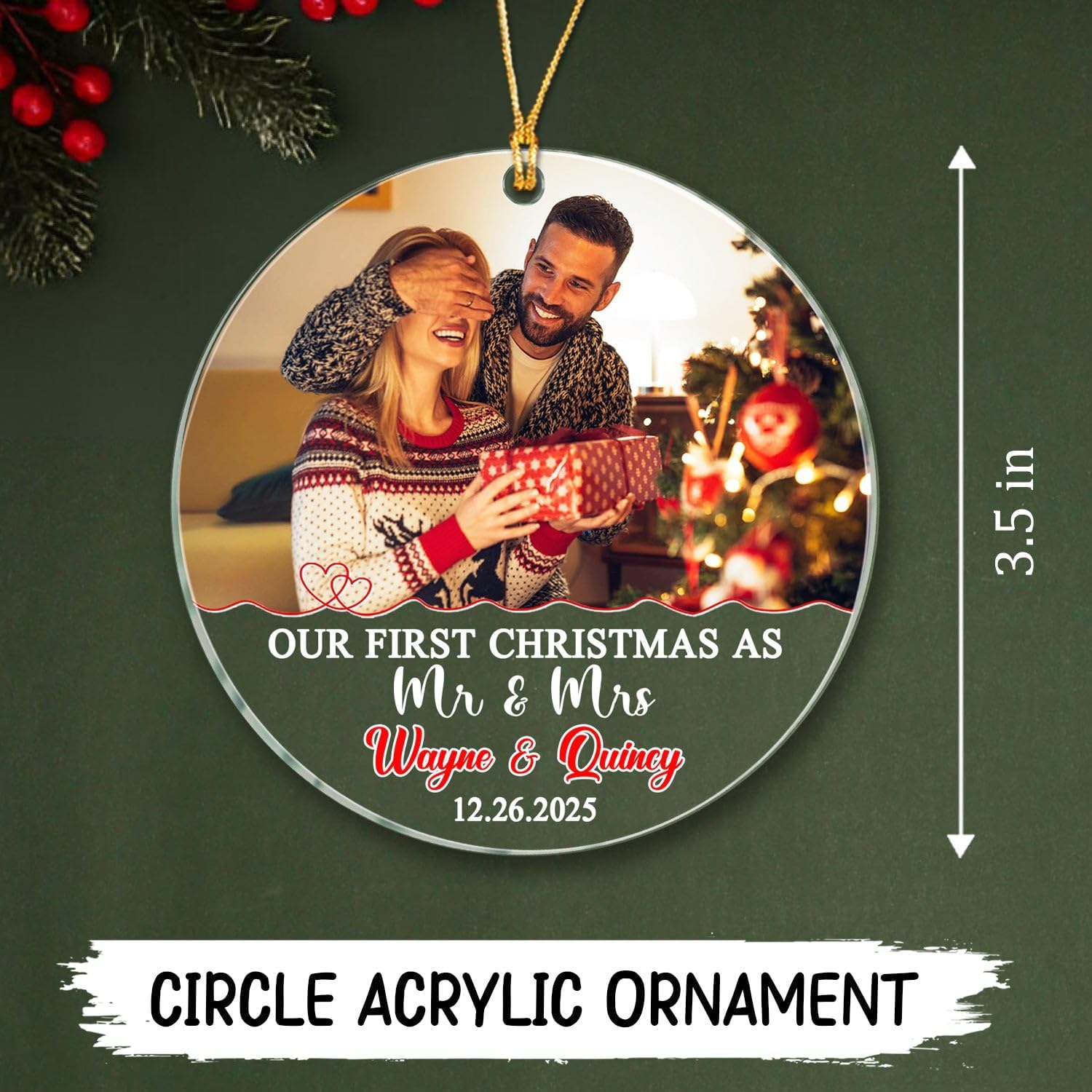 Our First Christmas As Mr & Mrs Ornament 2025, Customized Date Photo Names Mr & Mrs Together Ornaments Gift for Anniversary, Personalized Upload Photo Christmas Ornament for Just Married/Newlyweds