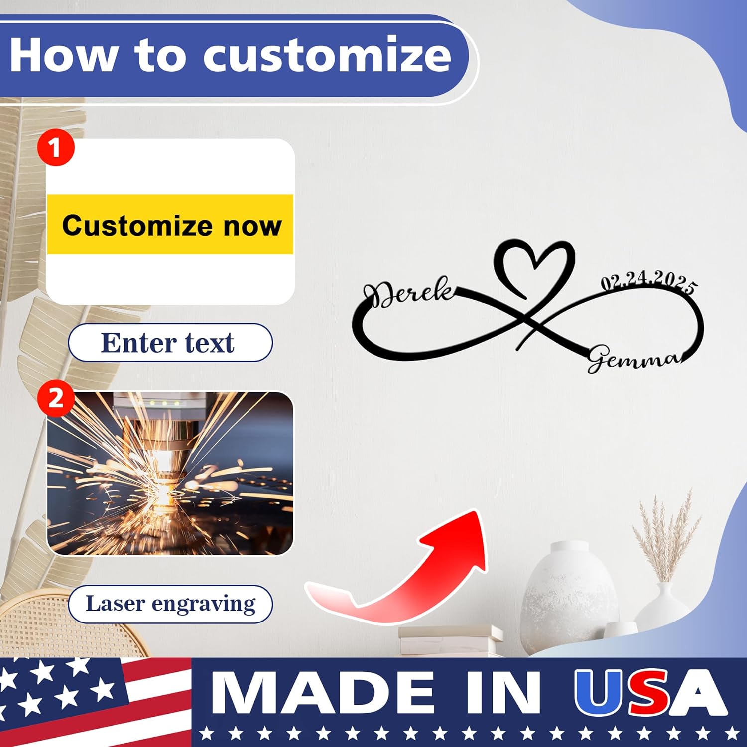 Personalized Valentine's Day Wedding Gifts For Couple Newlyweds, Custom Metal Infinity Signs With Name Date, Metal Name Signs Wall Art, Customized Anniversary Christmas Gifts For Women Men