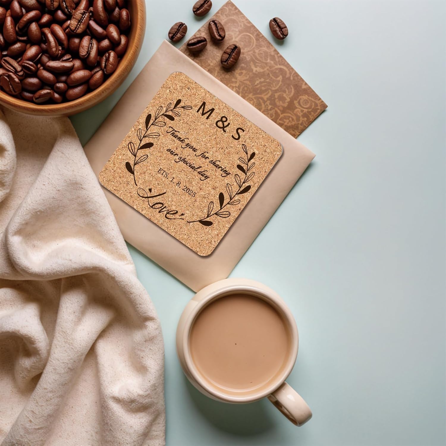 - Bulk Custom Cork Coasters for Weddings and Events:Planning a large gathering? Our wedding favors for guests bulk 100 option ensures you have enough custom cork coasters for all your guests. These personalized coasters bulk sets are cost-effective and perfect for rustic wedding favors or corporate giveaways