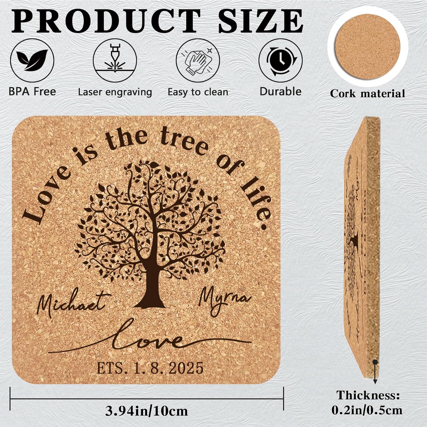 Custom Coasters Personalized Cork Coasters Bulk with Logo Wedding Personalized Cork Natural Wood Engraved Drink for Wedding Favors (Cork Coasters - Square)