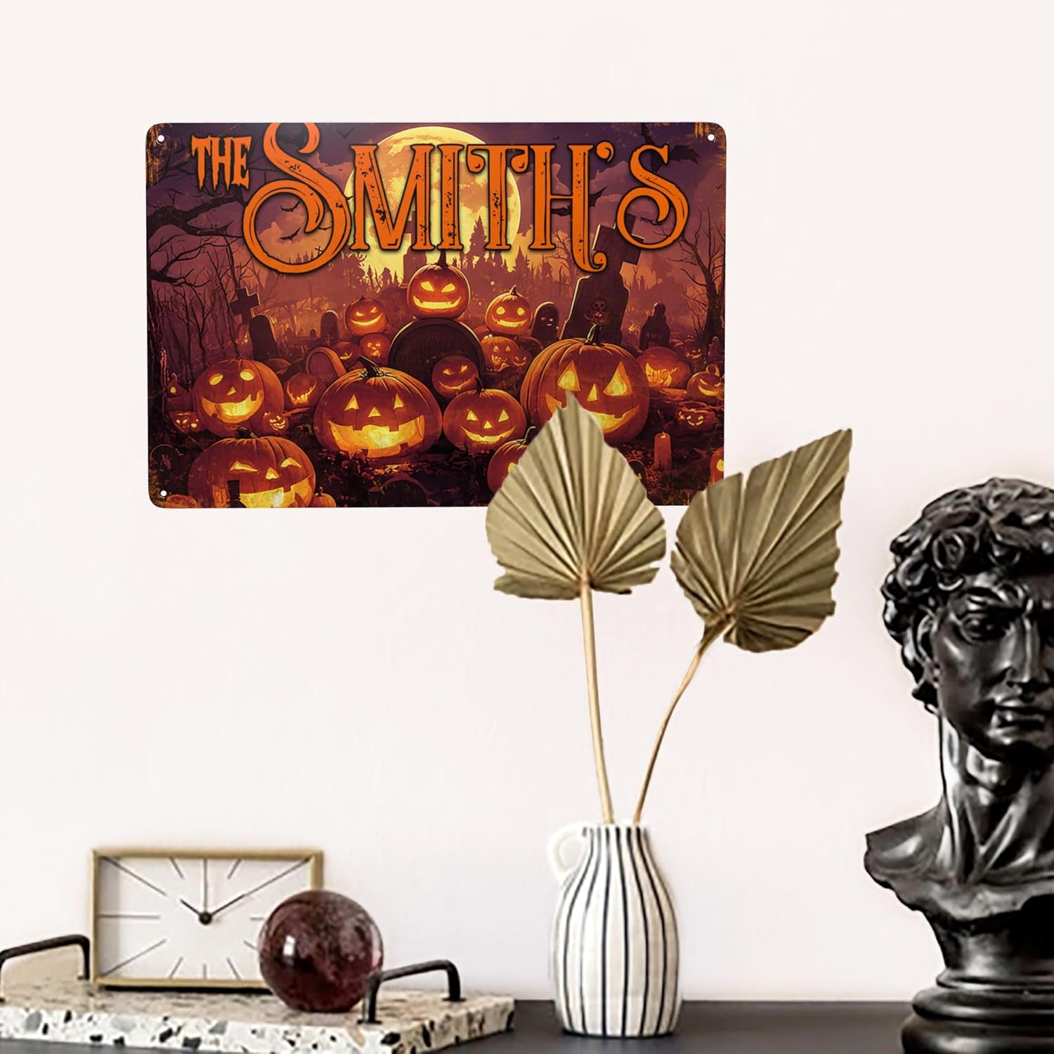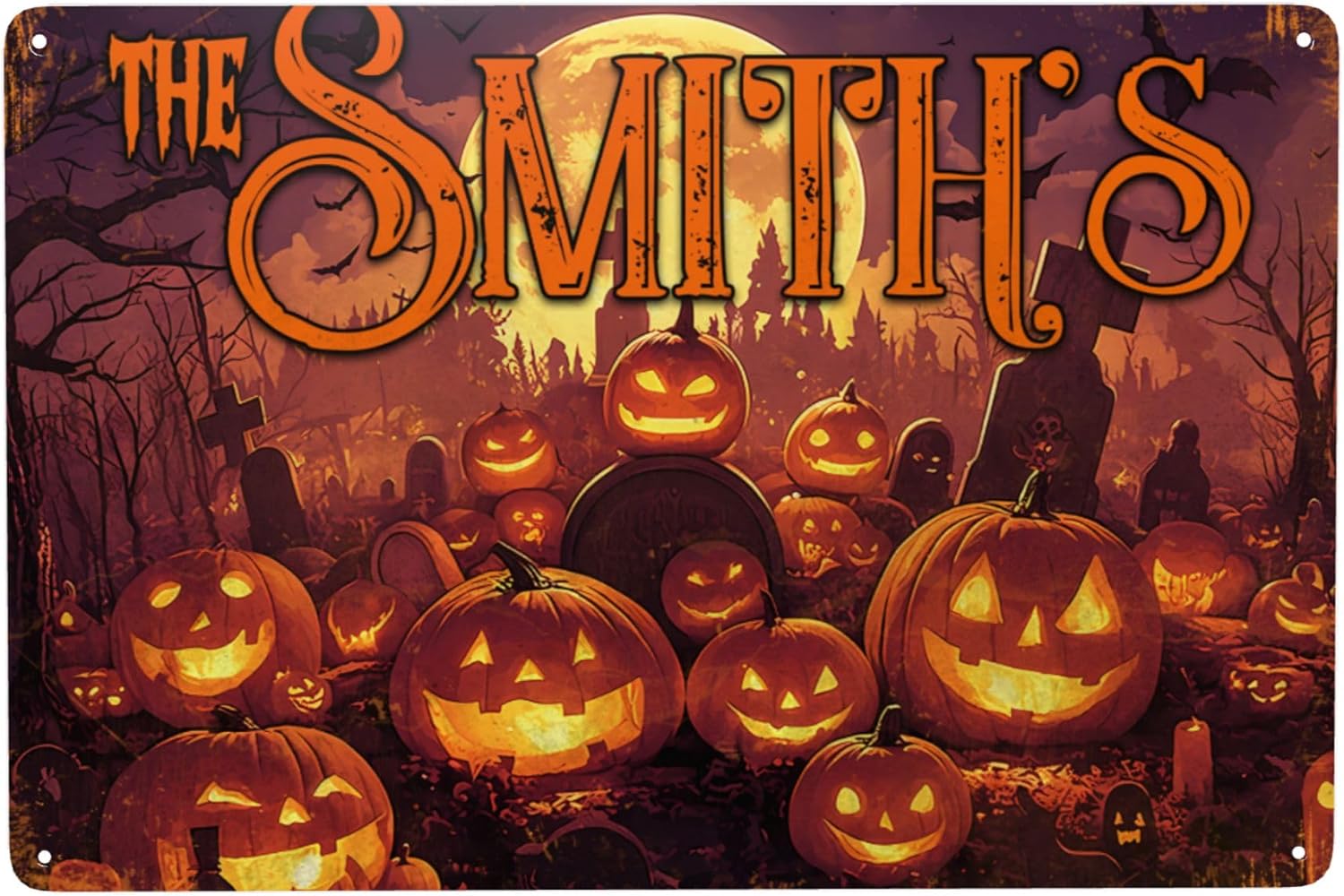 Personalized Halloween Metal Sign with Family's Name or Text Custom Pumpkin Wall Decor Signs Fade Resistance for Indoor Outdoor Spooky Gifts for Friends Family